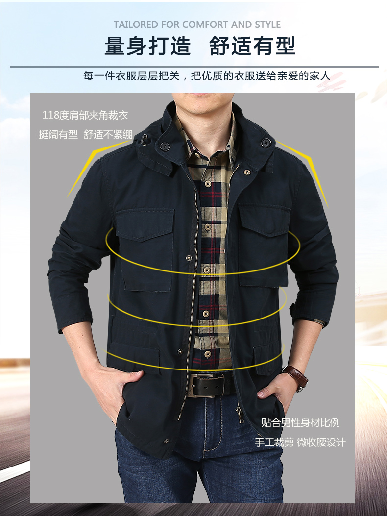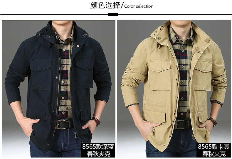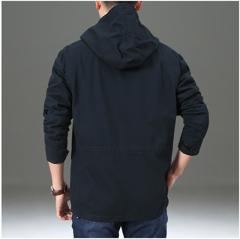 Áo khoác nam mùa xuân và mùa thu rộng rãi size lớn nhiều túi đựng dụng cụ áo khoác trẻ trung và trung niên Áo khoác gió đơn giản cotton tinh khiết trẻ trung và trung niên