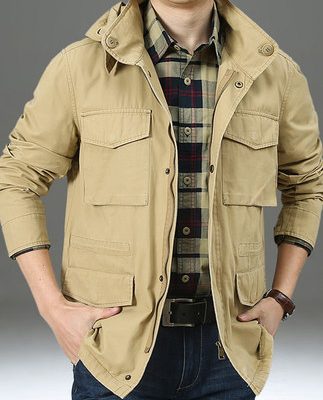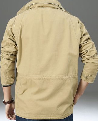 Áo khoác nam mùa xuân và mùa thu rộng rãi size lớn nhiều túi đựng dụng cụ áo khoác trẻ trung và trung niên Áo khoác gió đơn giản cotton tinh khiết trẻ trung và trung niên