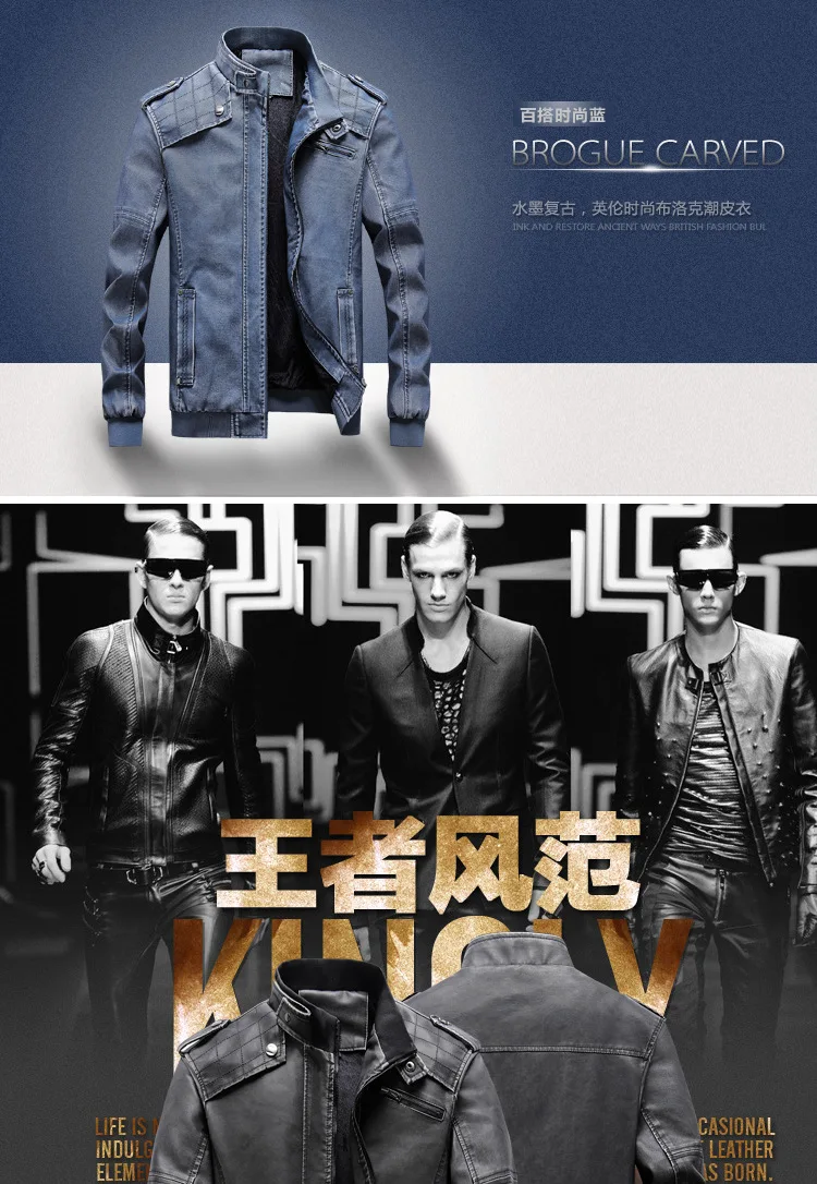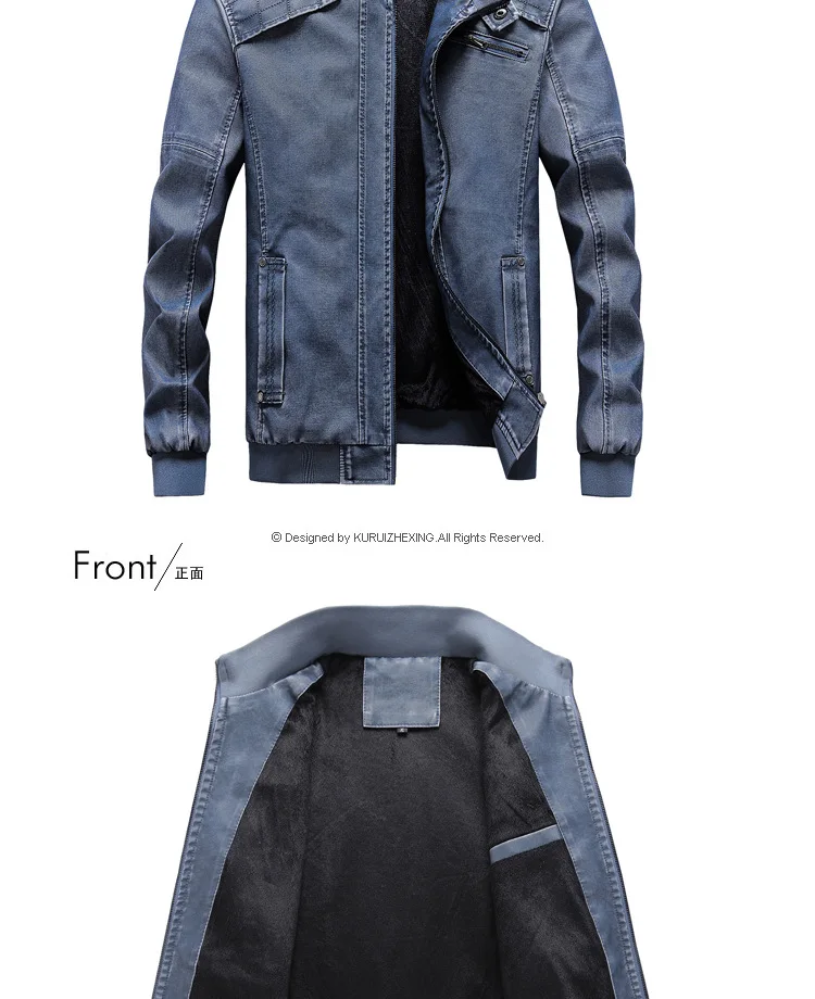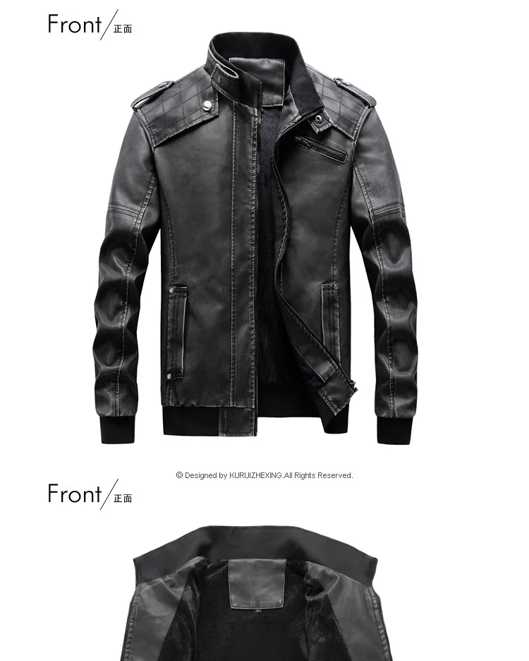 Áo khoác nam Thu Đông PU Áo khoác da mới Slim Fit cổ áo đứng Nam Chống gió Xe máy Dây kéo Áo khoác da nam