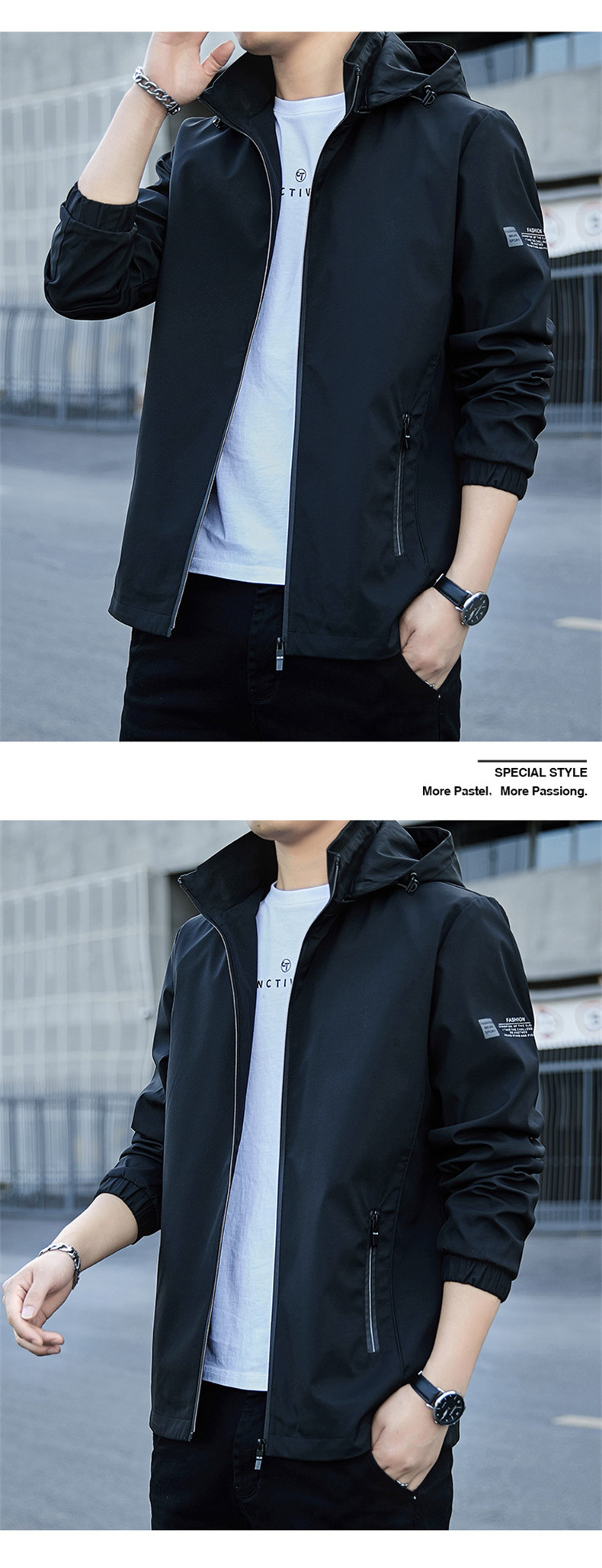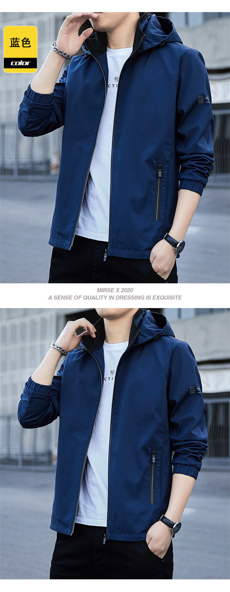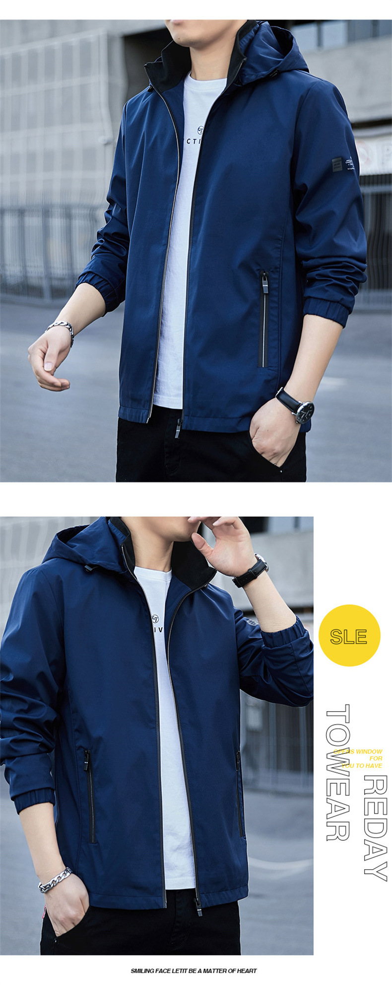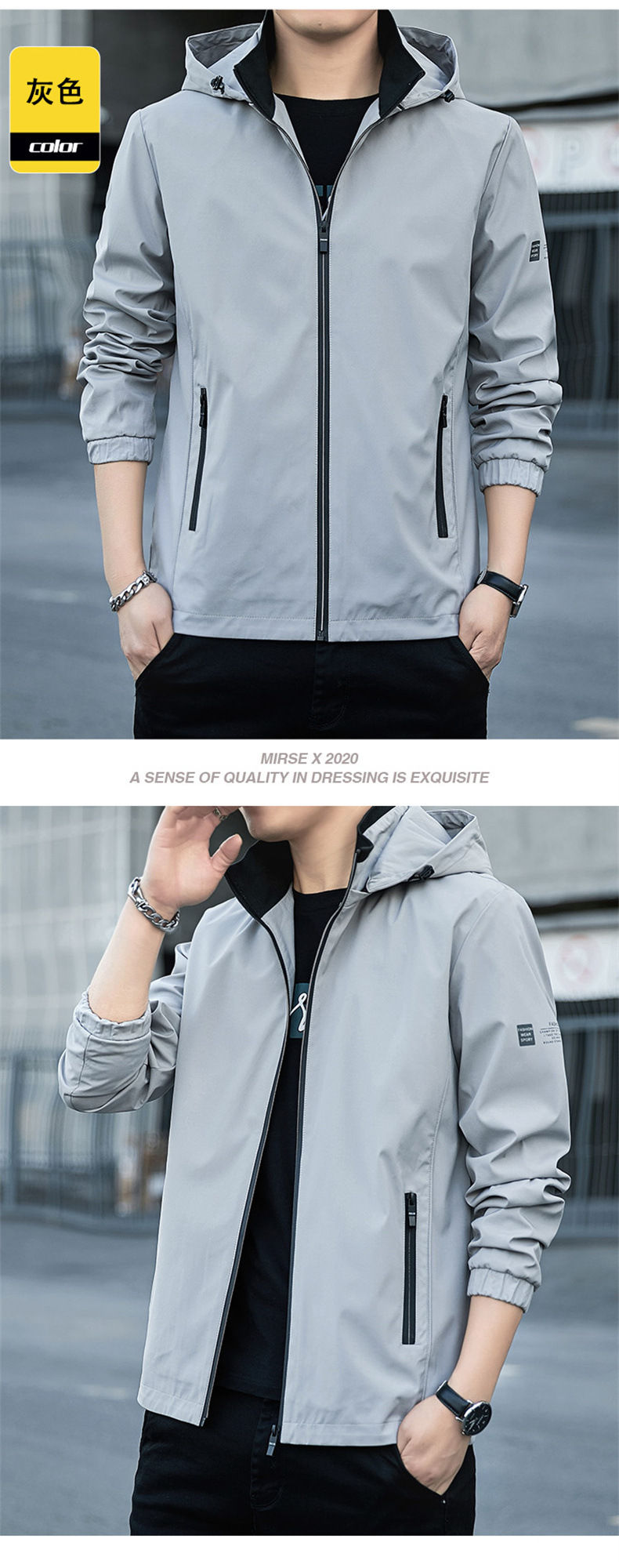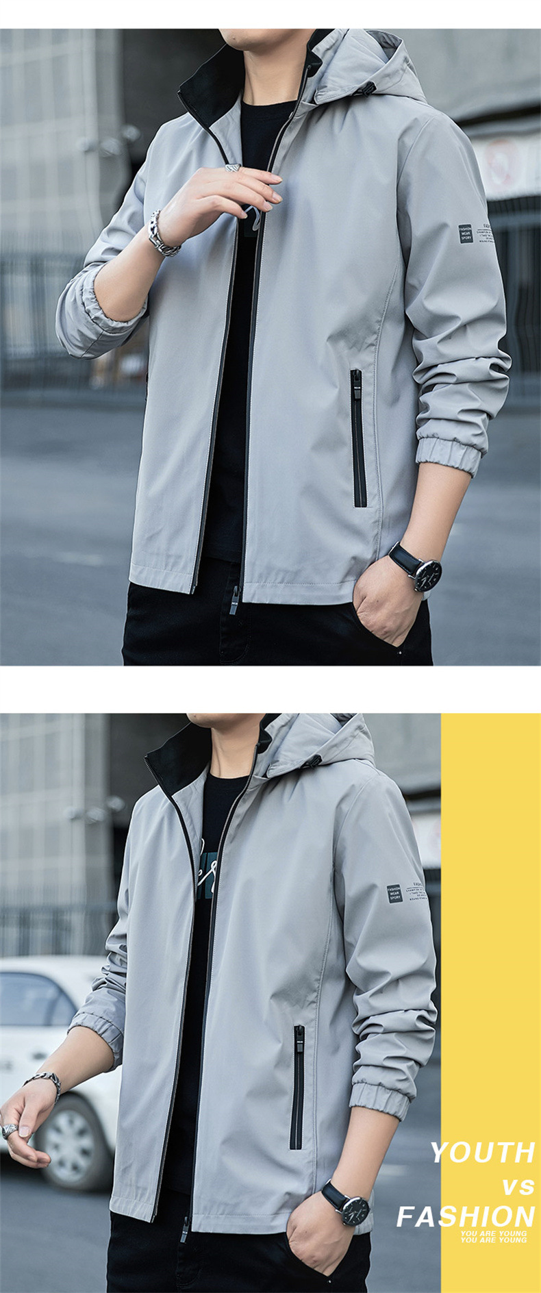 Áo khoác nam Xuất khẩu Mùa xuân và mùa thu mới Áo khoác có mũ trùm đầu hợp thời trang Hàn Quốc Xu hướng trẻ trung hàng đầu của nam giới