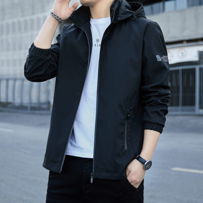 Áo khoác nam Xuất khẩu Mùa xuân và mùa thu mới Áo khoác có mũ trùm đầu hợp thời trang Hàn Quốc Xu hướng trẻ trung hàng đầu của nam giới