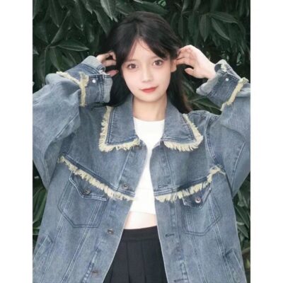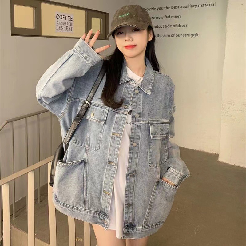 Áo khoác ngắn denim siêu hot của Nhật Bản và Hàn Quốc dành cho nữ mùa xuân và mùa thu 2023 áo khoác có mũ trùm đầu dài tay mới dành cho học sinh
