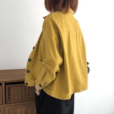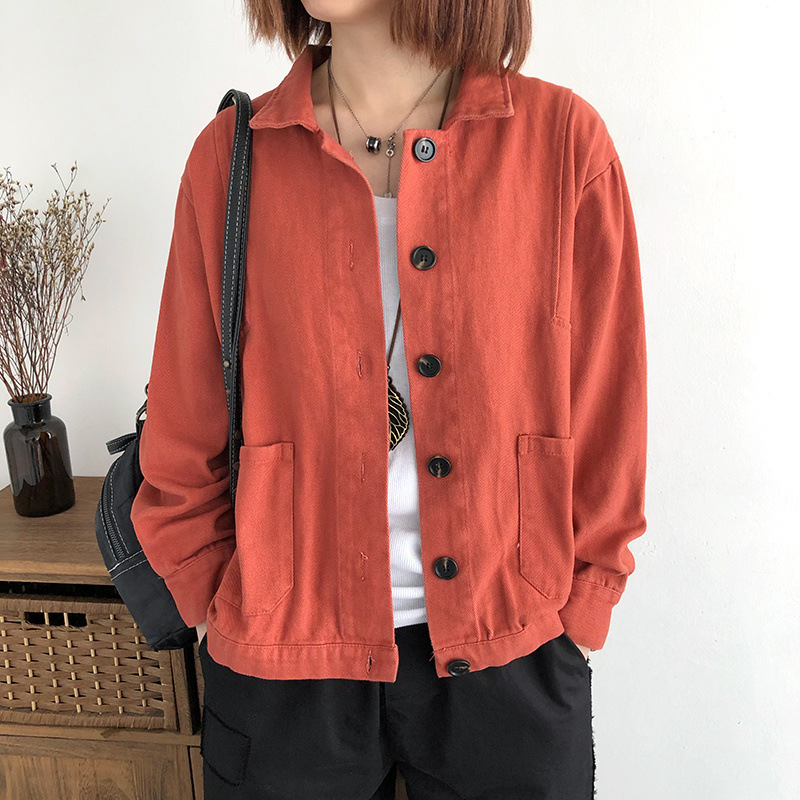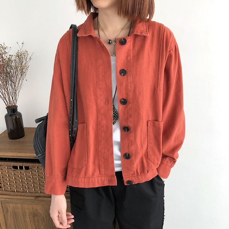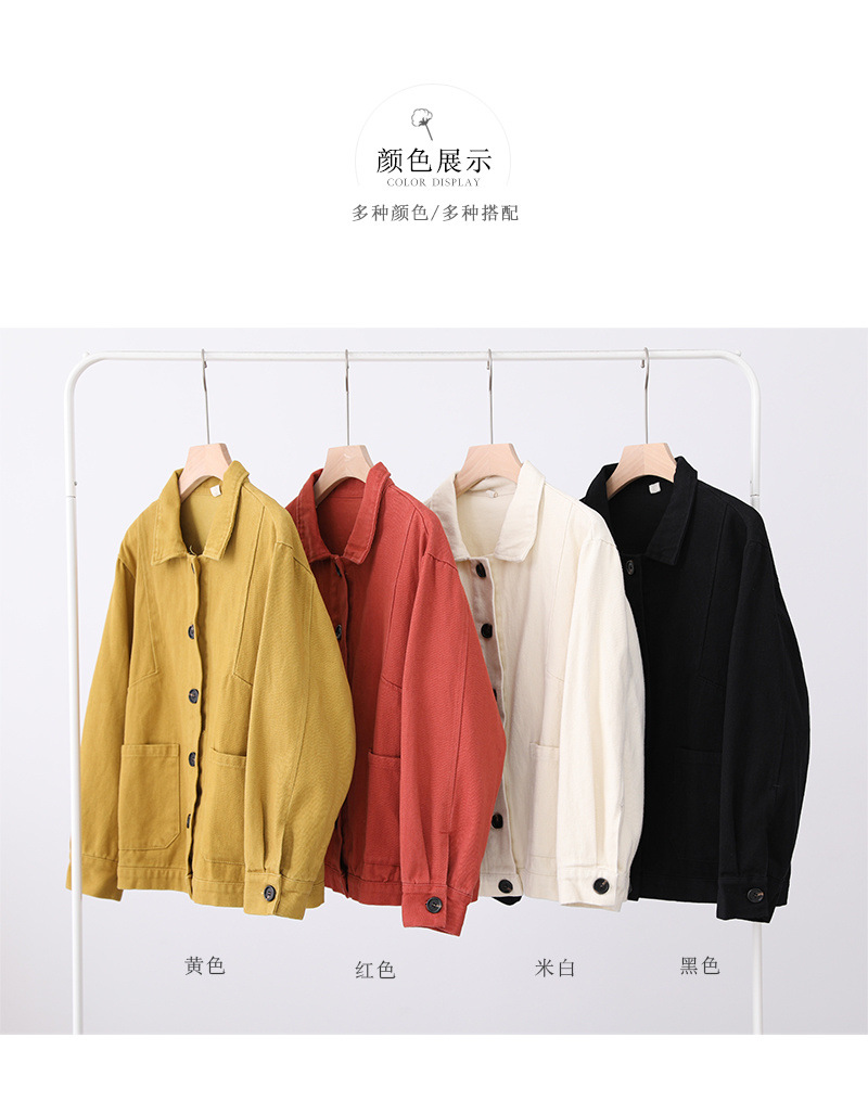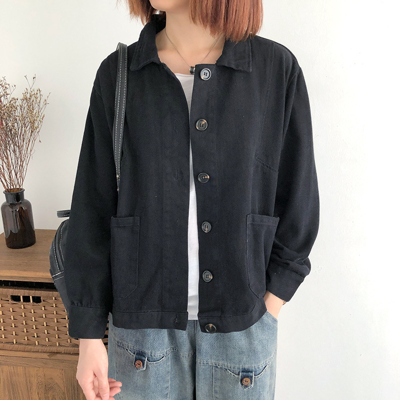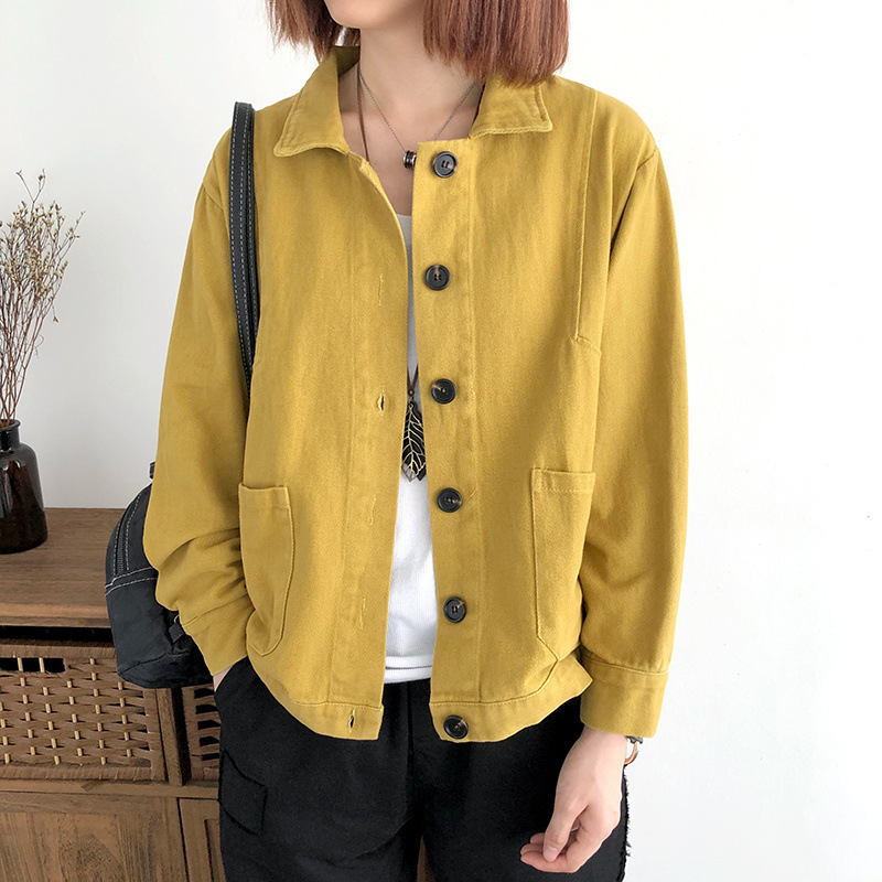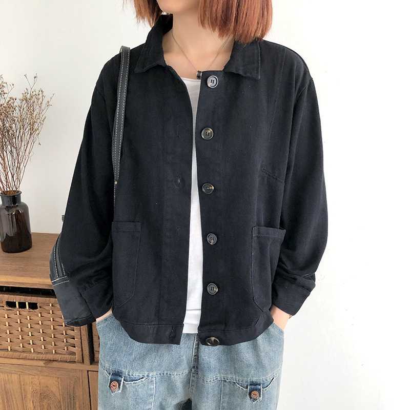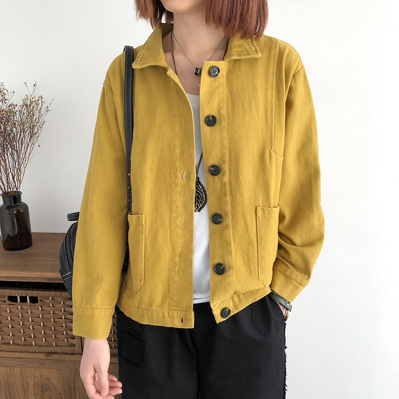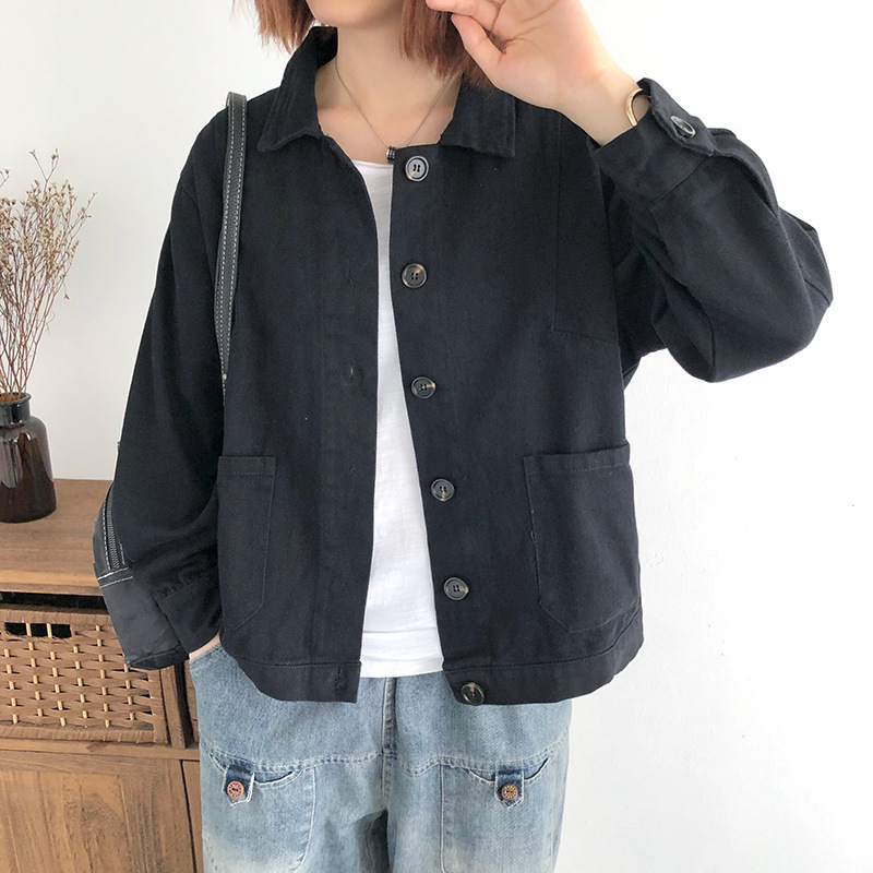 Áo khoác ngắn giản dị mùa xuân mới của phụ nữ màu trơn lỏng phù hợp với tất cả các trận đấu cổ áo ve áo dụng cụ hàng đầu áo khoác dài tay phong cách Hàn Quốc