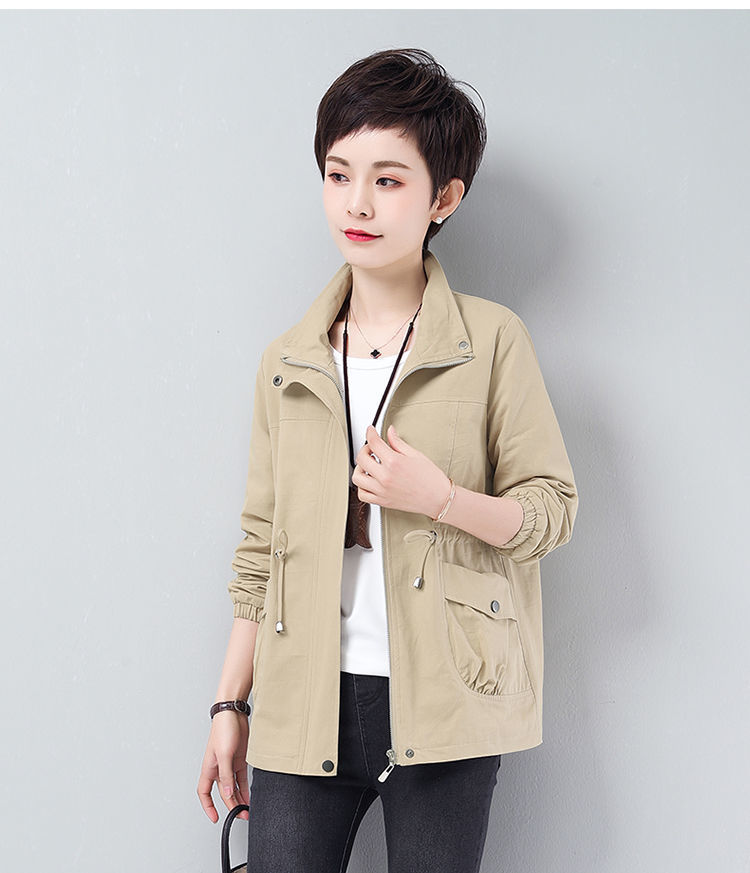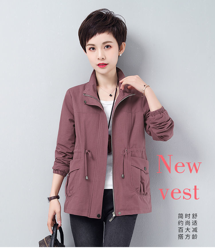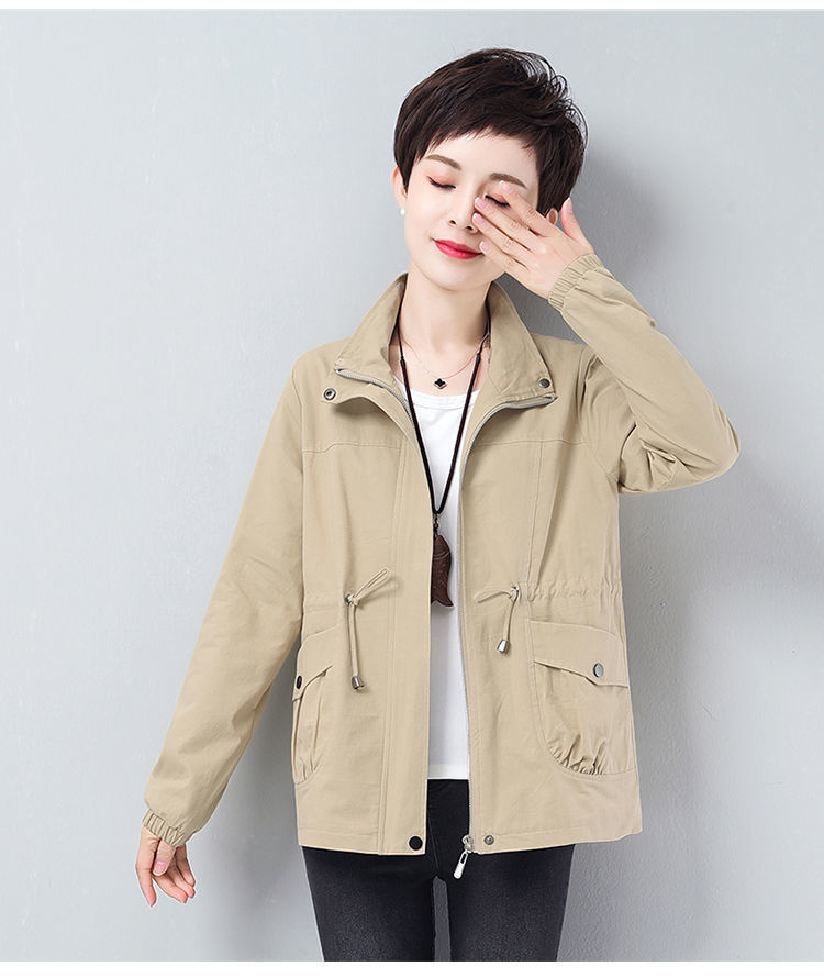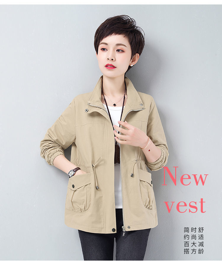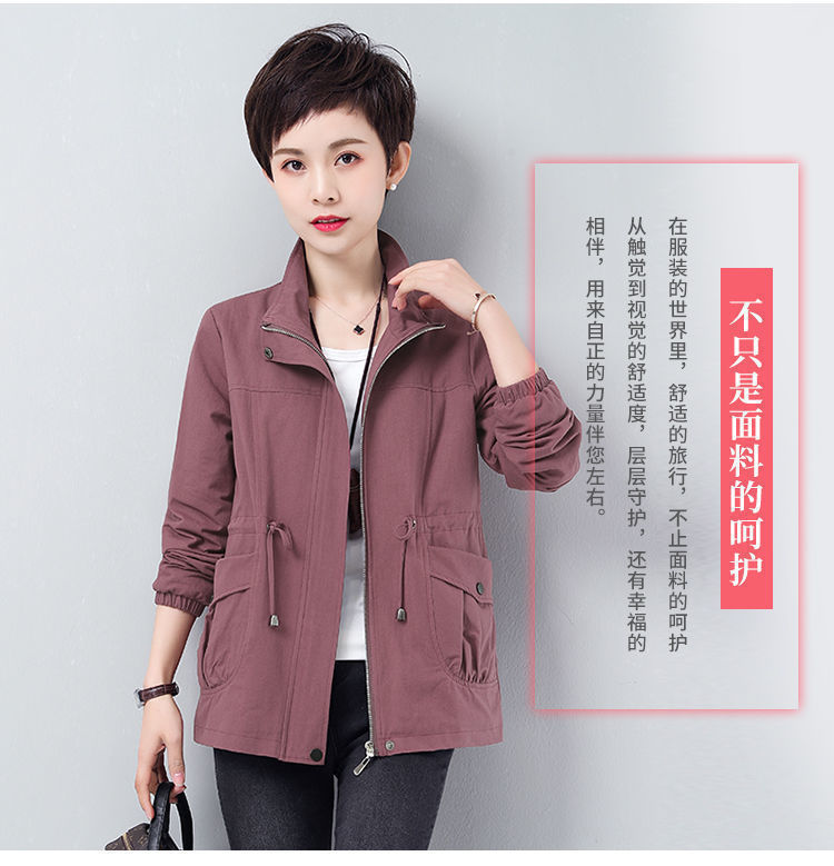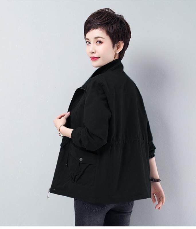 Áo khoác ngắn nữ mùa xuân và mùa thu mới rộng rãi kích thước lớn cho các bà mẹ trung niên và cao tuổi áo khoác gió giản dị