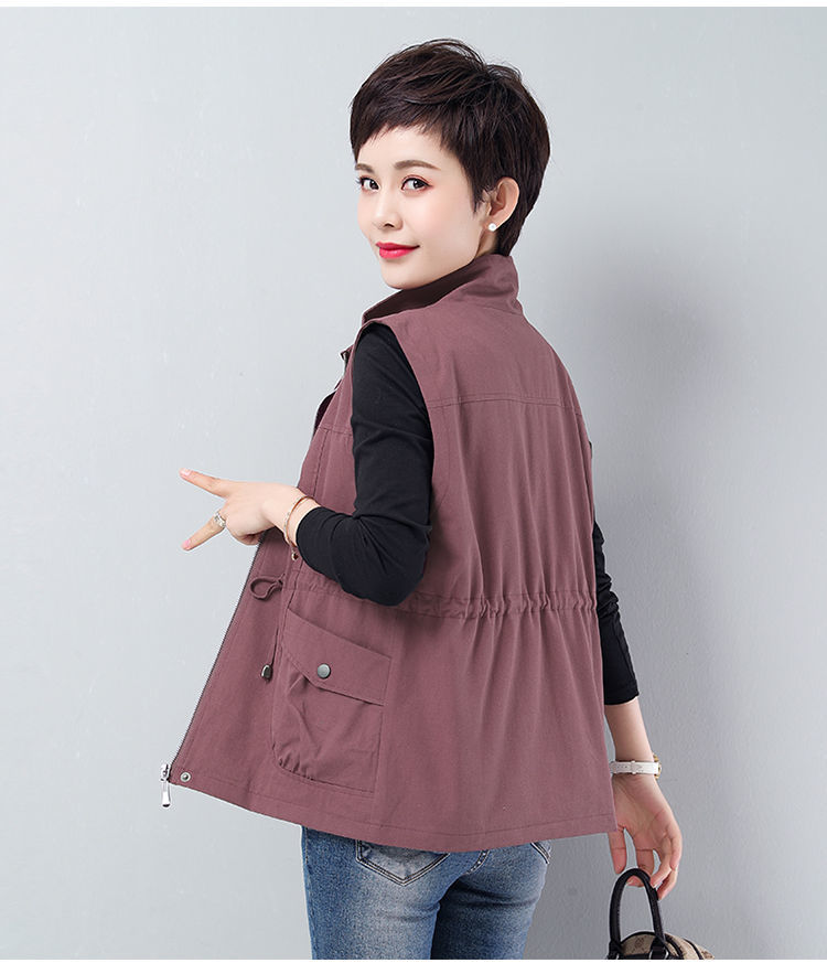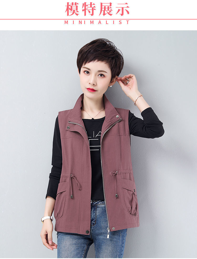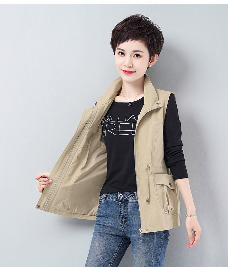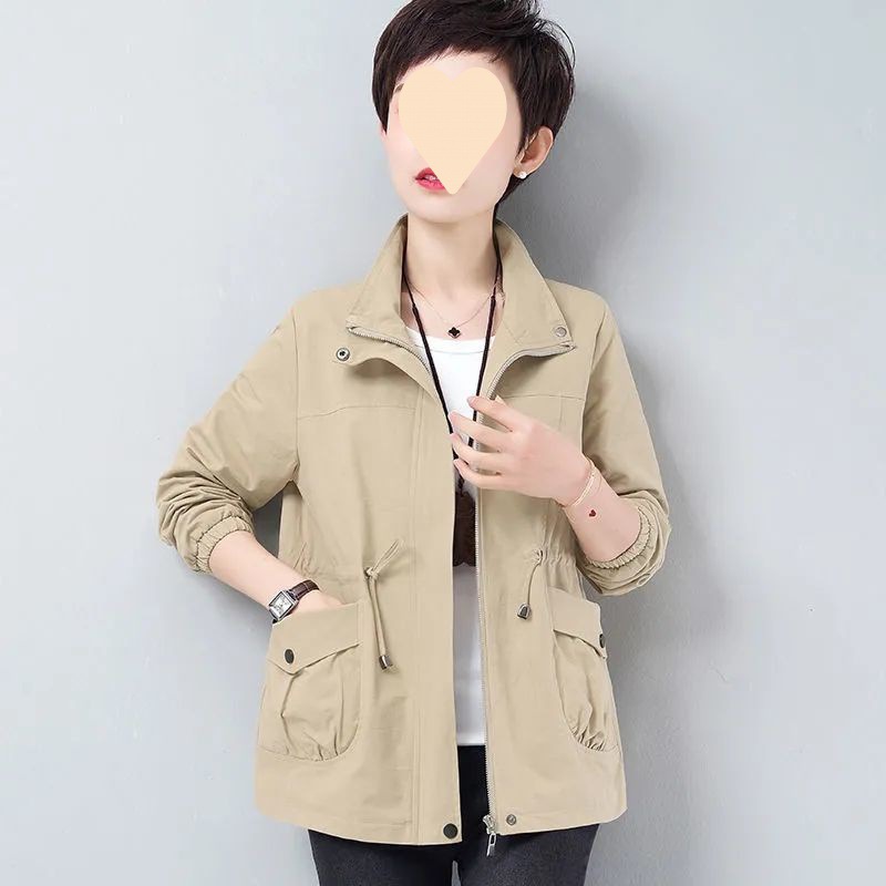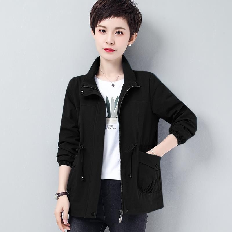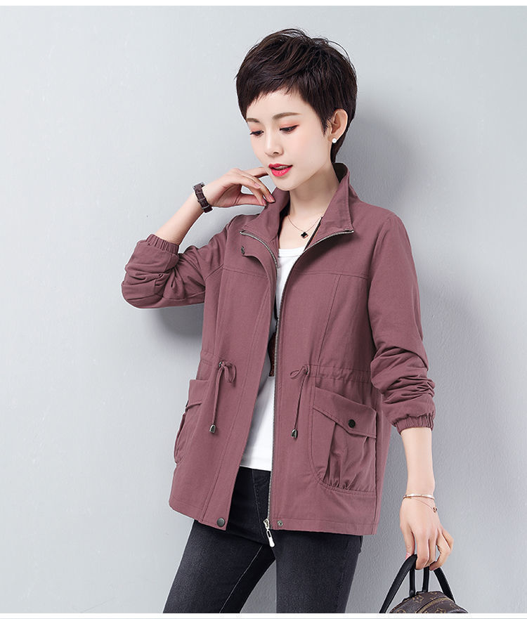 Áo khoác ngắn nữ mùa xuân và mùa thu mới rộng rãi kích thước lớn cho các bà mẹ trung niên và cao tuổi áo khoác gió giản dị