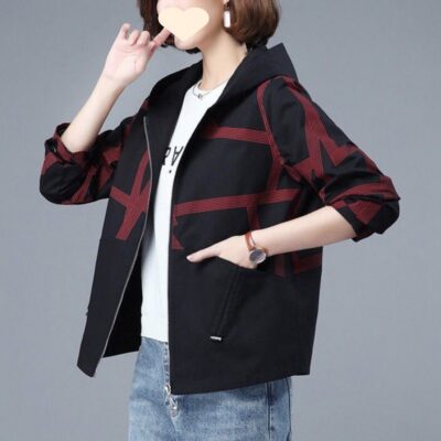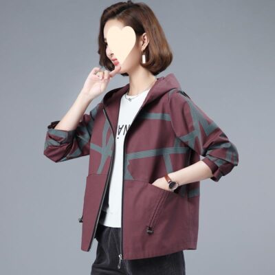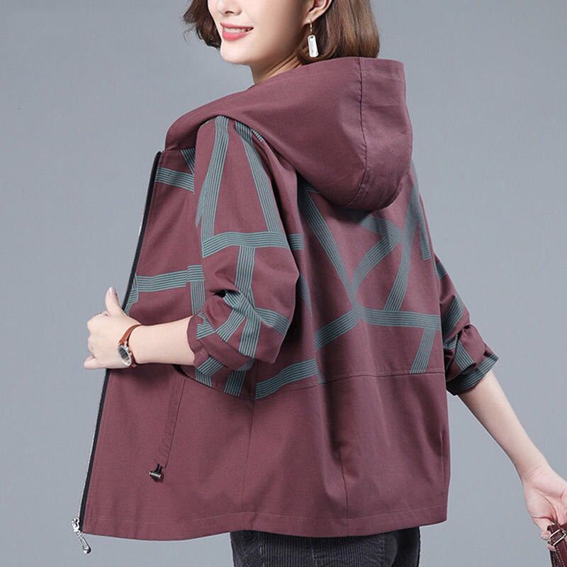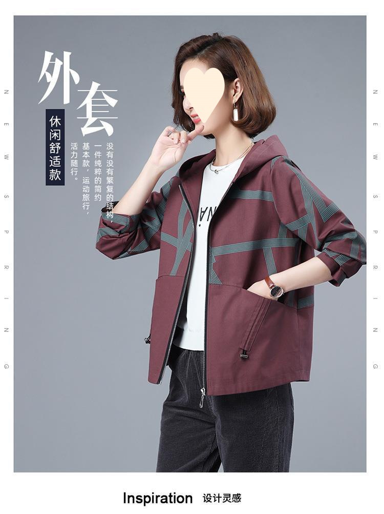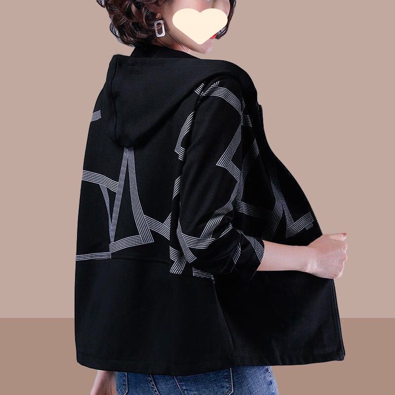 Áo khoác ngắn nữ mùa xuân và mùa thu phiên bản Hàn Quốc dáng rộng mới kích thước lớn áo khoác mỏng thường ngày áo len có mũ thủy triều
