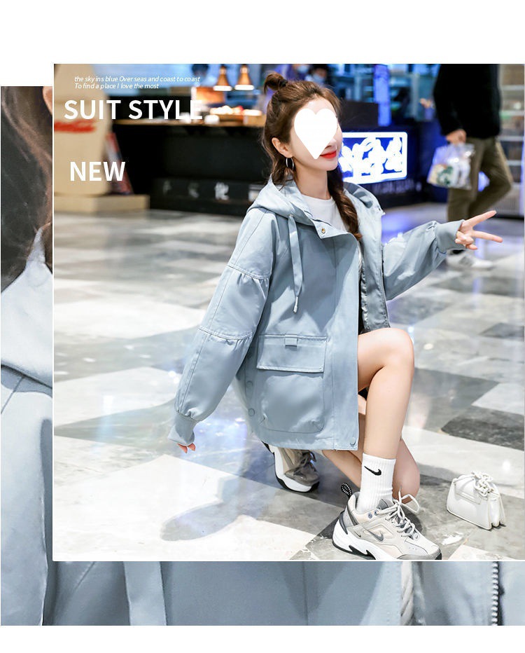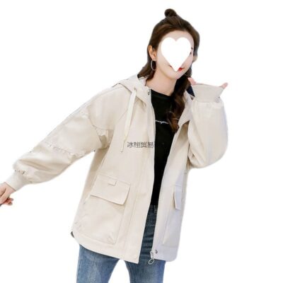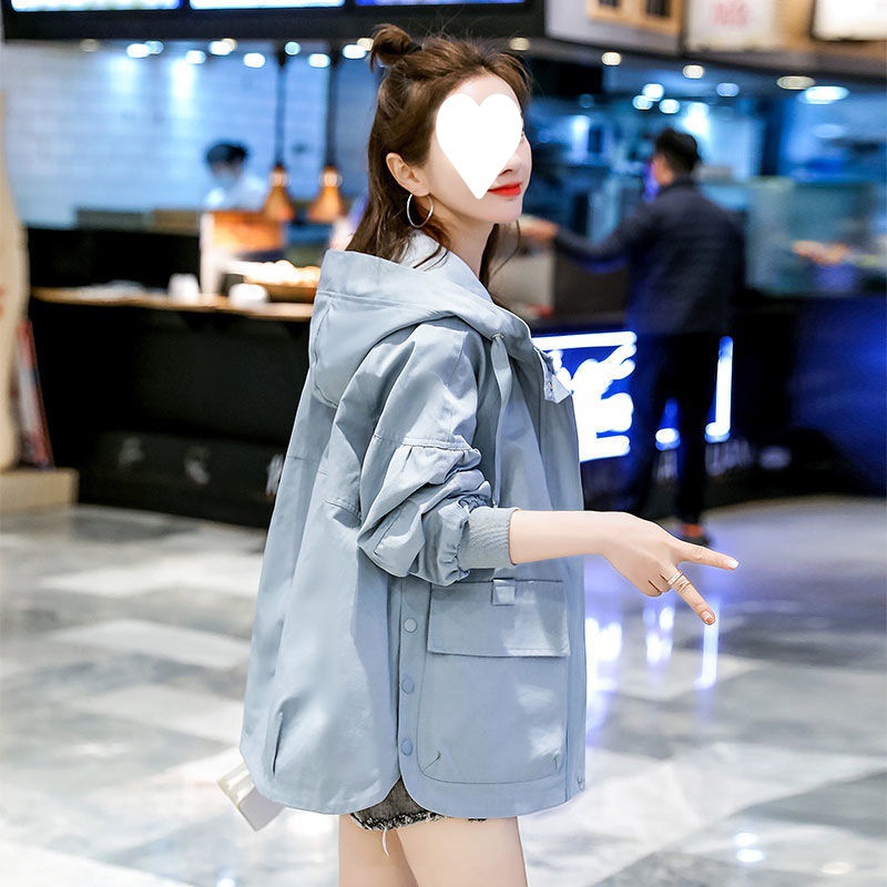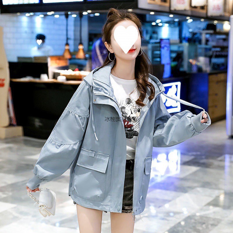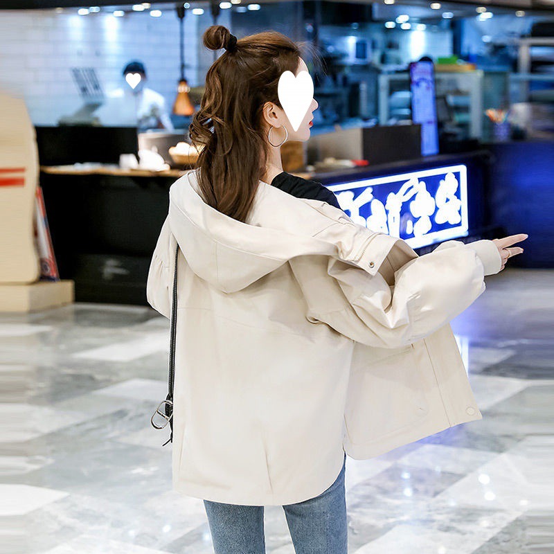 Áo khoác nhỏ nữ dáng rộng phiên bản Hàn Quốc mùa xuân 2023 mới giản dị có mũ trùm đầu áo gió dụng cụ tất cả các trận đấu