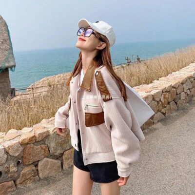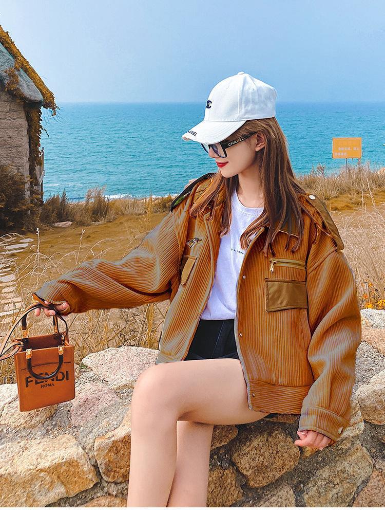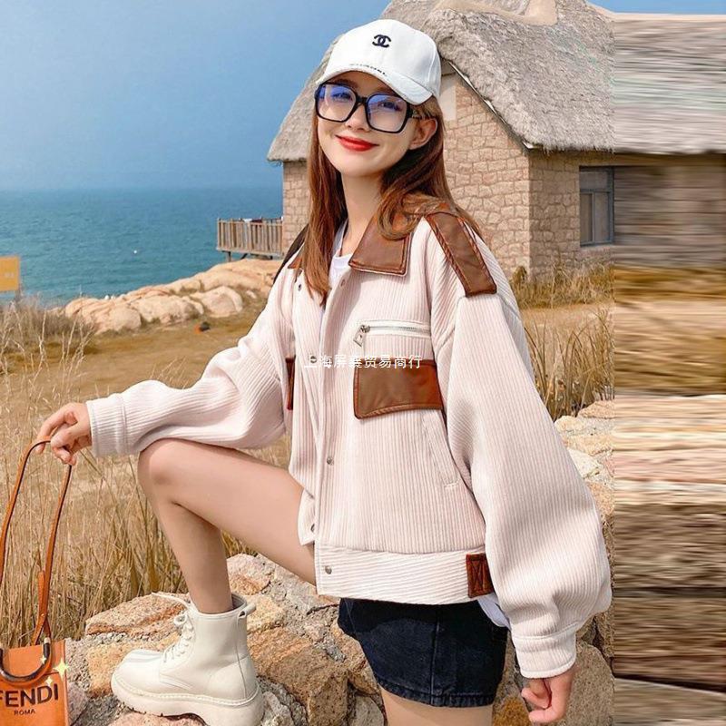 Áo khoác nhung dáng ngắn nữ phong cách thu đông 2023 phiên bản Hàn Quốc dáng rộng thường ngày phù hợp với áo khoác triều bán buôn