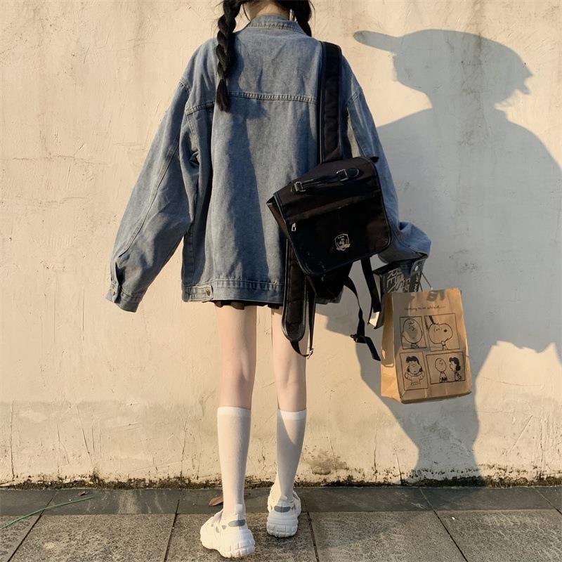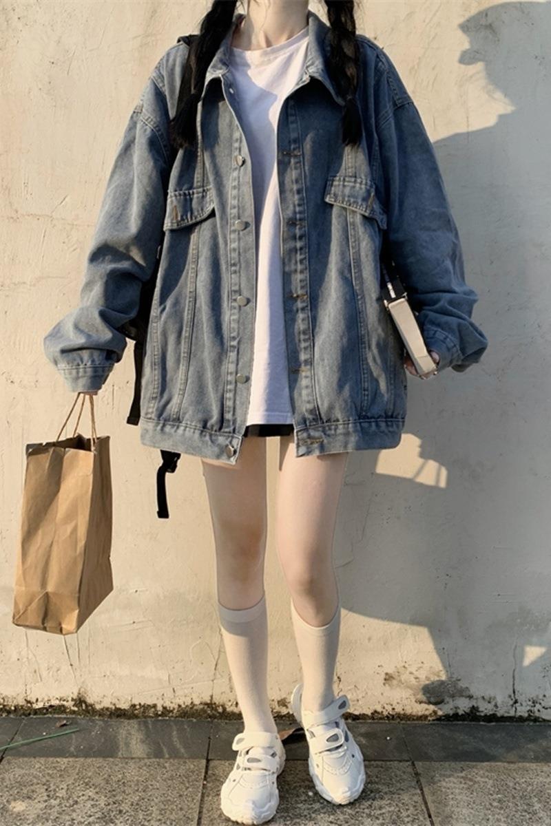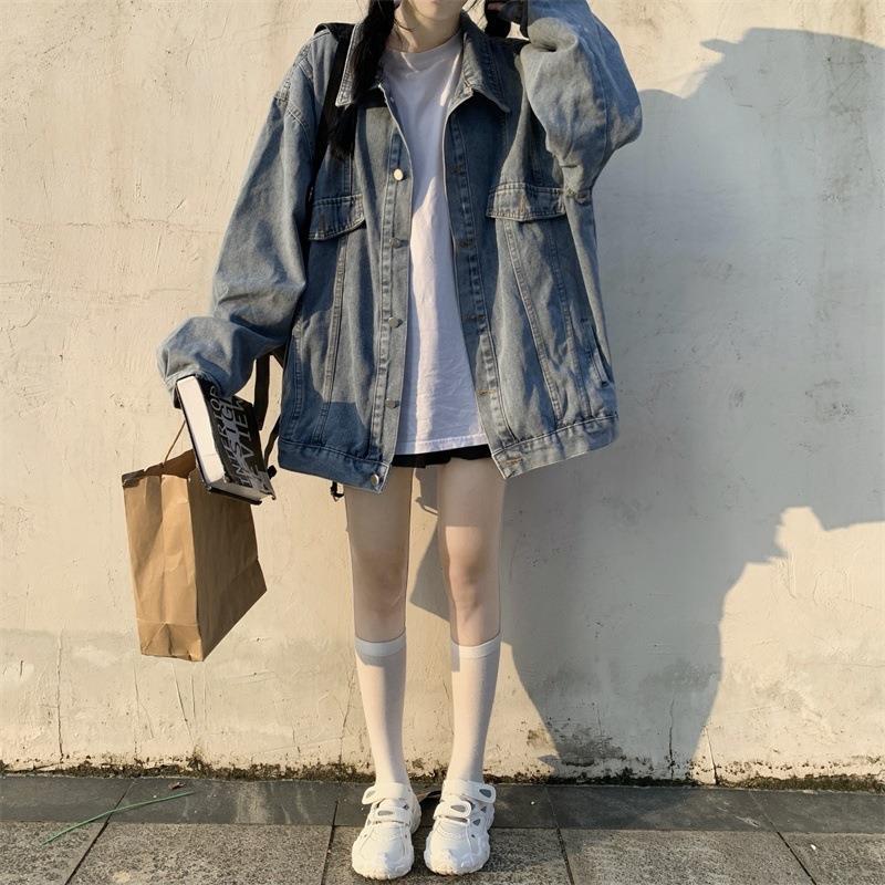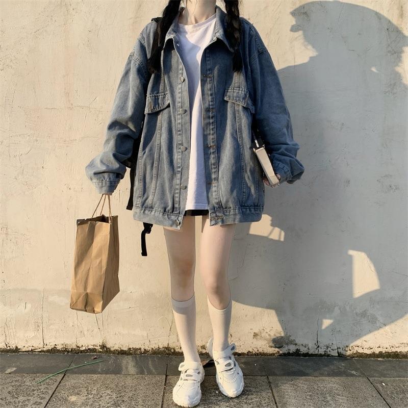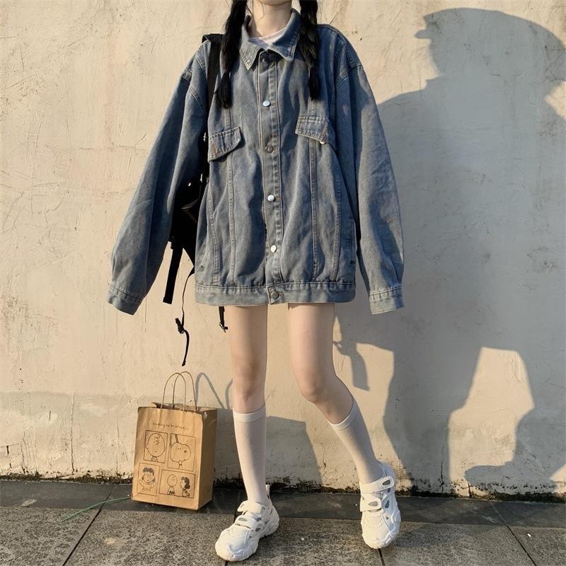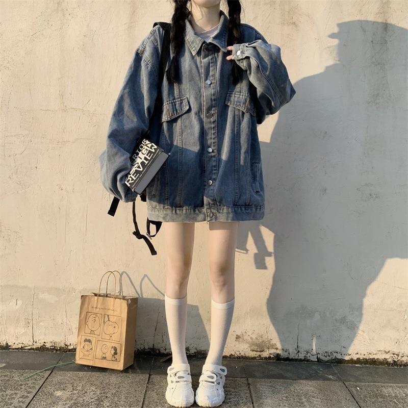 Áo khoác nữ cao bồi phong cách Hồng Kông cảm giác thiết kế lỏng lẻo kích thước lớn chất béo mm mùa thu và mùa đông dụng cụ sinh viên áo khoác áo choàng mùa xuân thay thế
