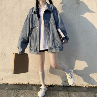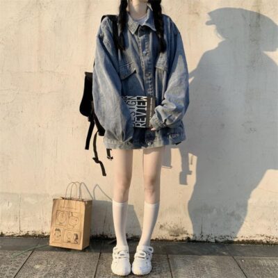 Áo khoác nữ cao bồi phong cách Hồng Kông cảm giác thiết kế lỏng lẻo kích thước lớn chất béo mm mùa thu và mùa đông dụng cụ sinh viên áo khoác áo choàng mùa xuân thay thế