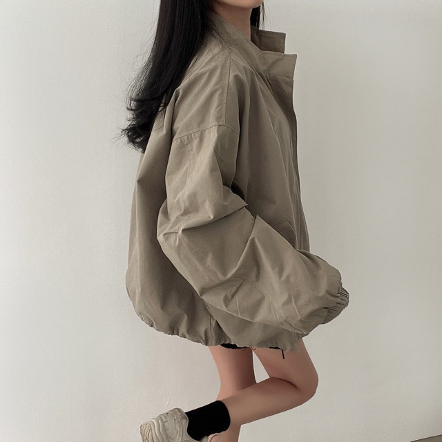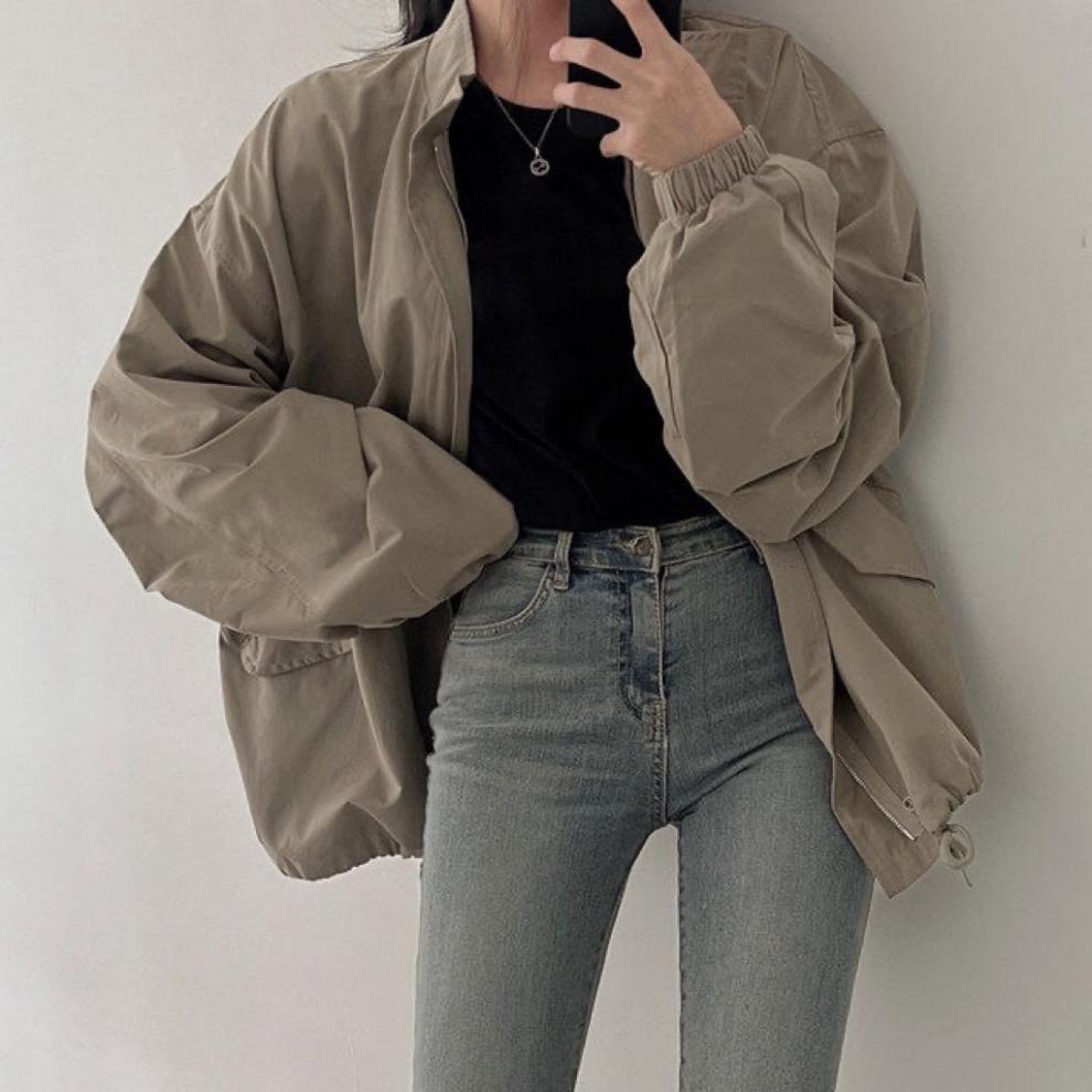 Áo khoác nữ dáng rộng phong cách Hàn Quốc mùa xuân và mùa thu dáng rộng mới phù hợp với tất cả các trận đấu cổ áo đứng đồng phục bóng chày áo khoác cardigan hàng đầu