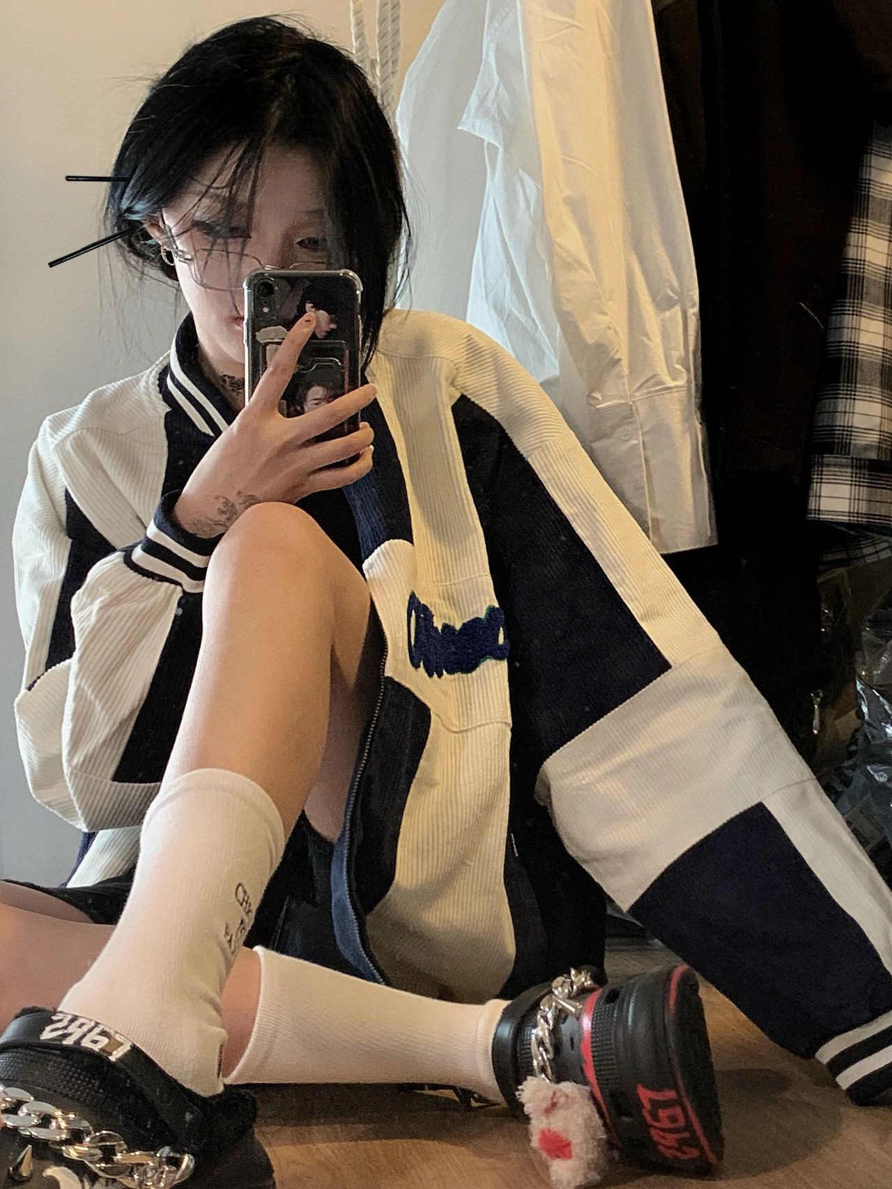 Áo Khoác Nữ Mùa Xuân 2023 Mới Retro Mỹ Ins Đồng Phục Bóng Chày Thiết Kế Cảm Giác Thích Hợp Phối Màu Áo Khoác Trên Triều