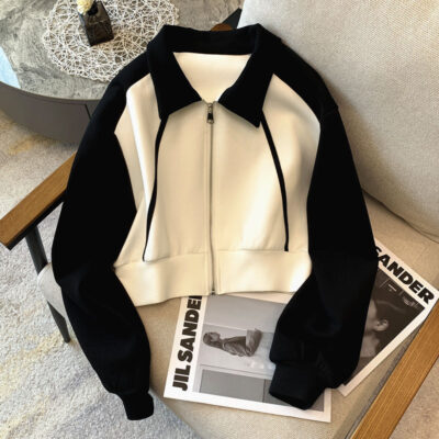 Áo Khoác Nữ Ve Áo Cổ Áo Len Cardigan Ngắn Xuân Thu Áo Khoác Mỏng Phần Trắng Nối Đầu Internet Người Nổi Tiếng