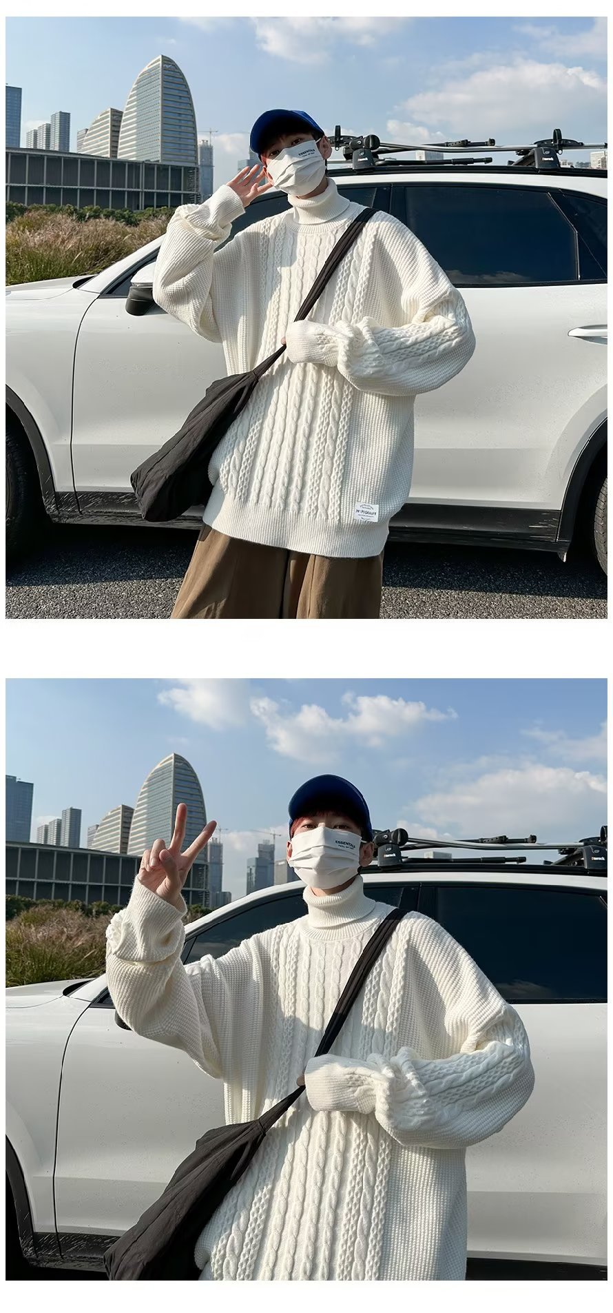 Áo Len Cao Cổ Nam Mùa Đông 2022 Mới Ấm Dệt Kim Rời Phong Cách Lười Cao Cấp Áo Len Áo Len