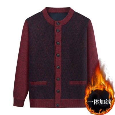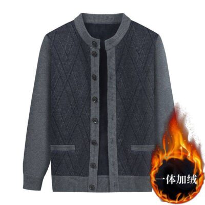 Áo len Cardigan bố Áo dệt kim nam Quần áo nam trung niên và cao tuổi Quần áo ông ngoại Áo khoác ngoại cỡ dày và lông cừu Quần áo thu đông