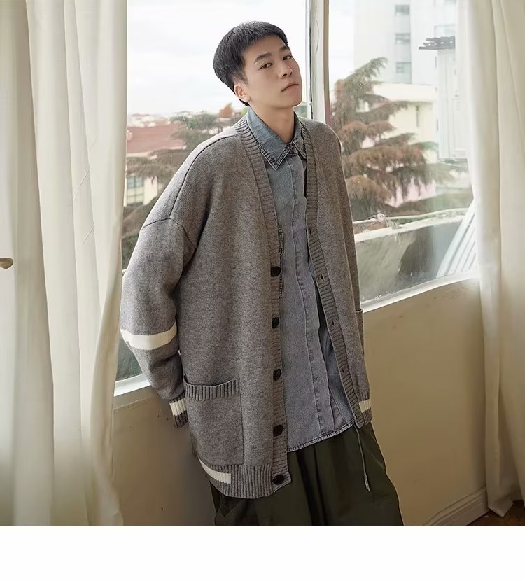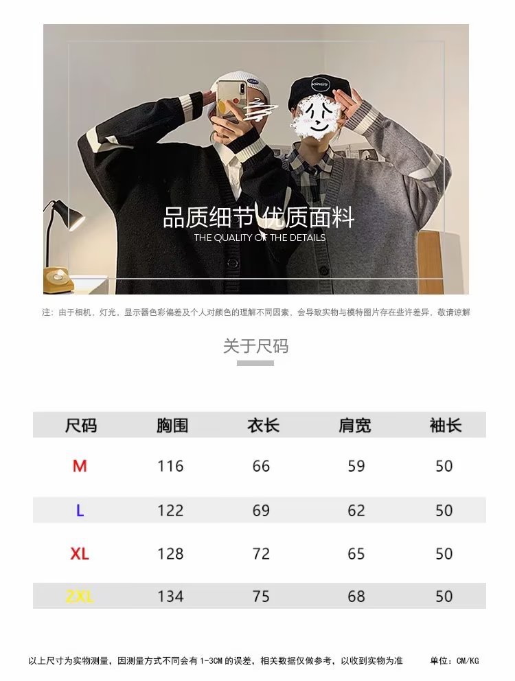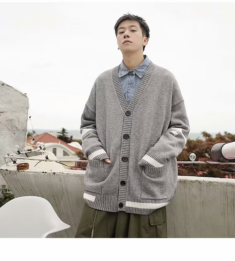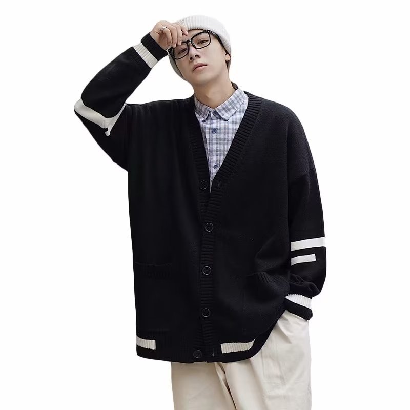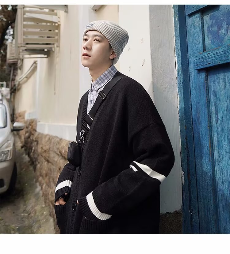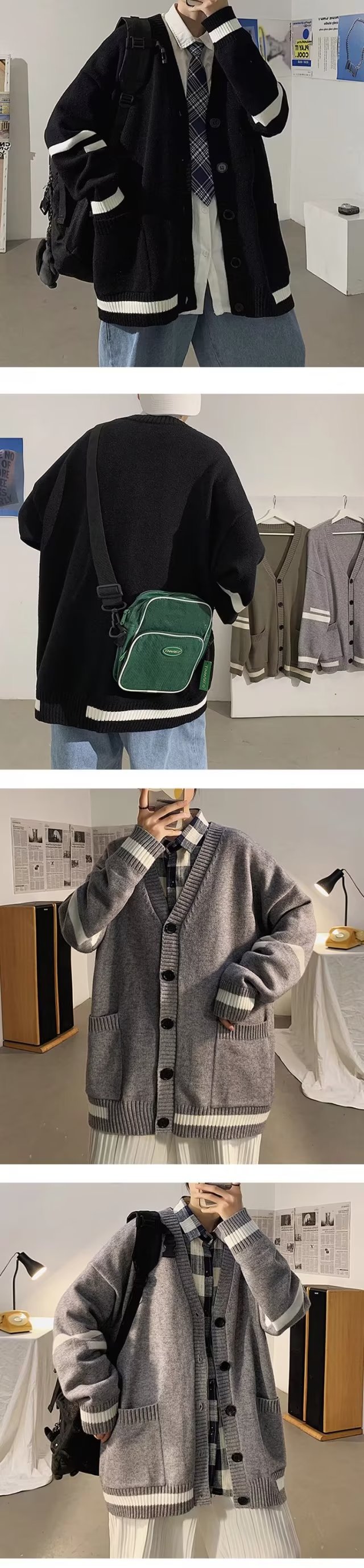 Áo len cardigan mùa thu đông nam phiên bản Hàn Quốc hợp thời trang in phong cách Hồng Kông retro dáng rộng thể thao áo khoác dệt kim thường ngày