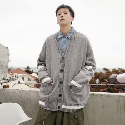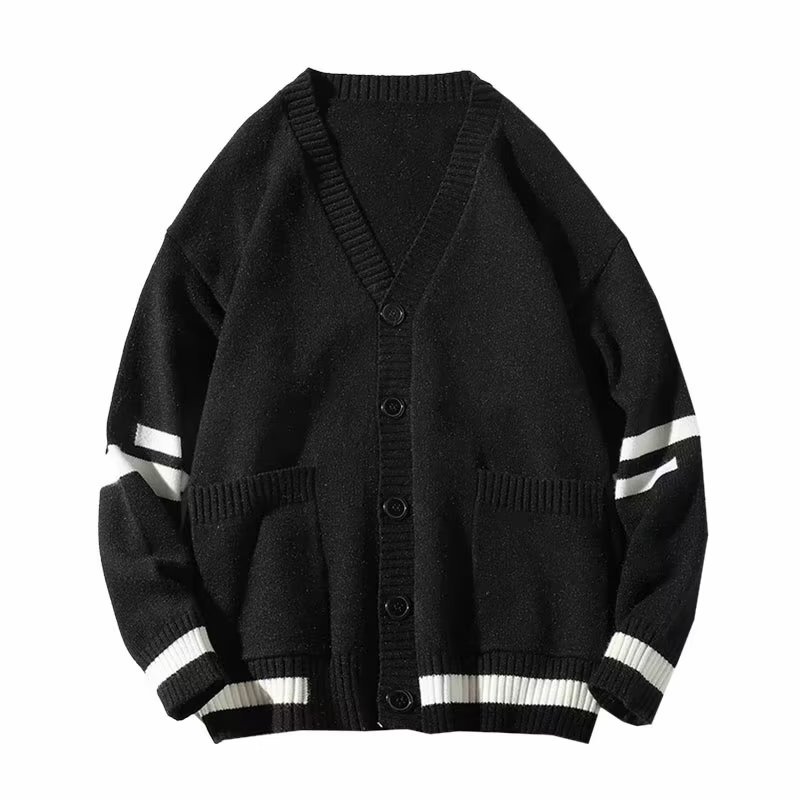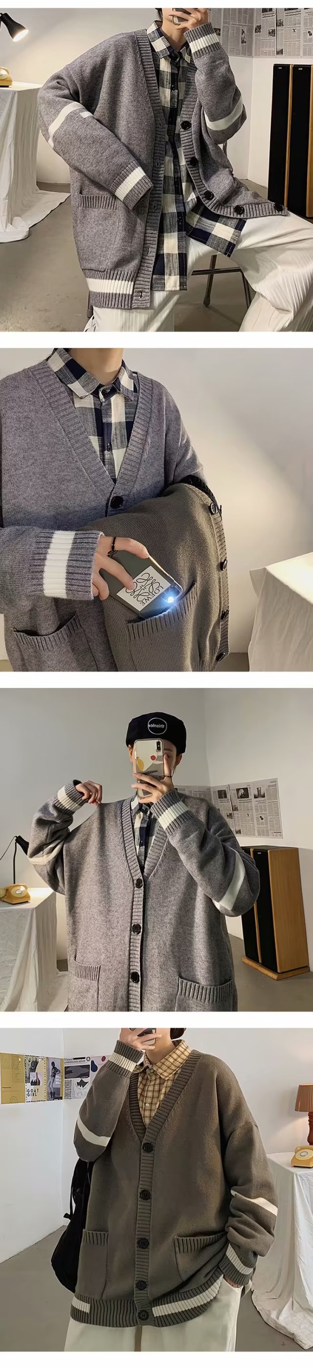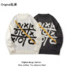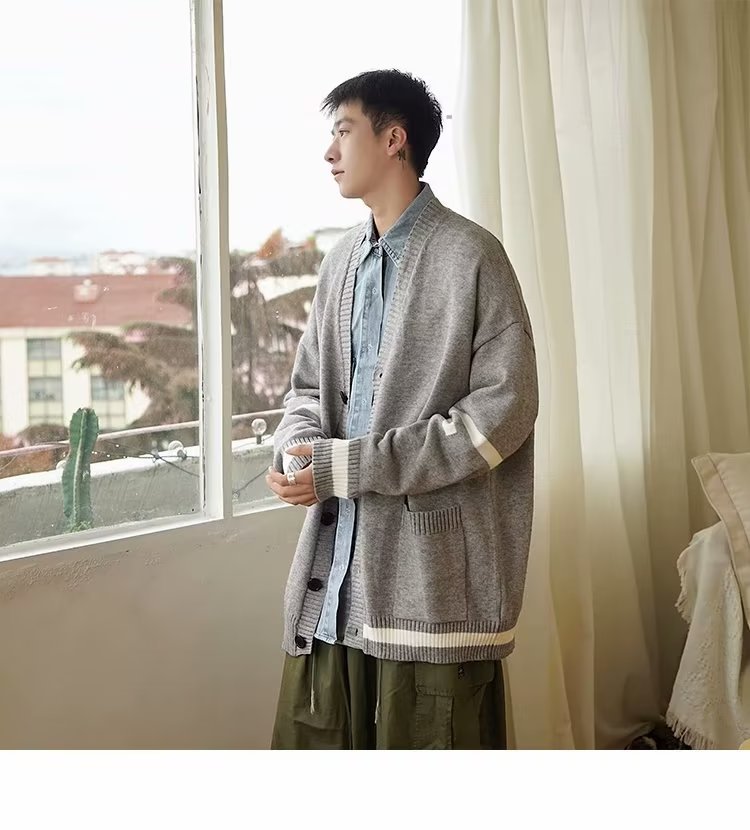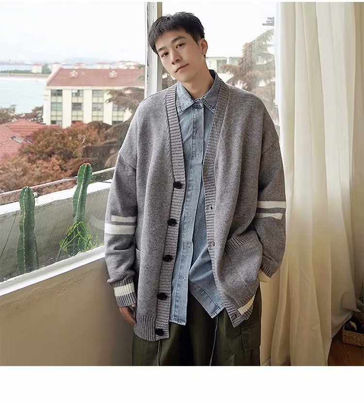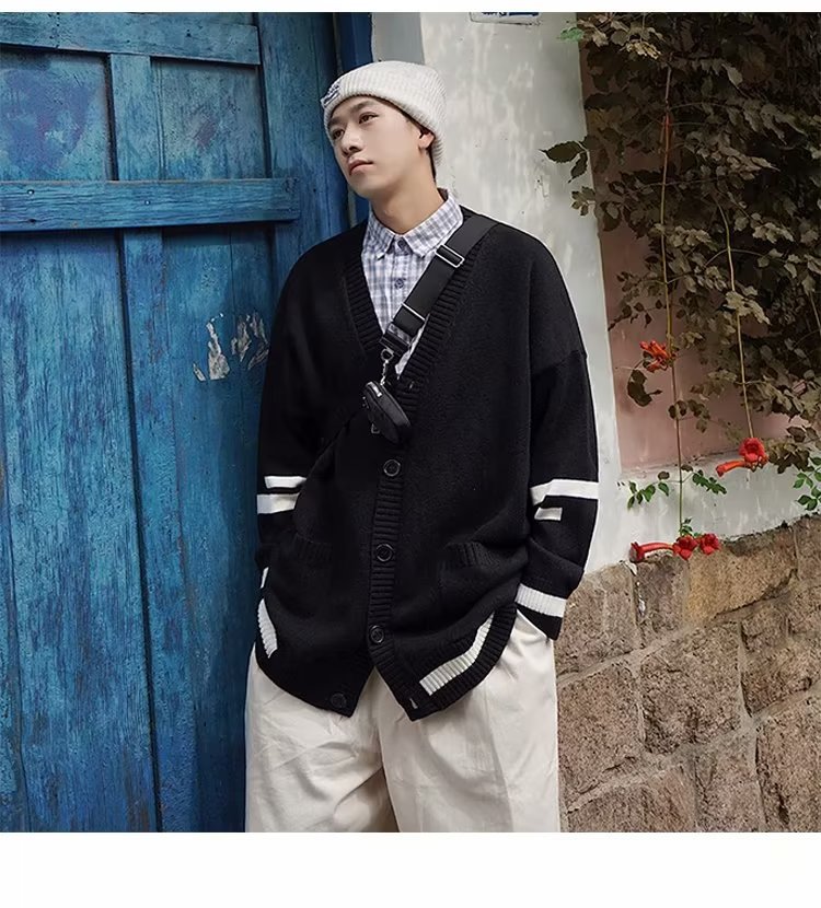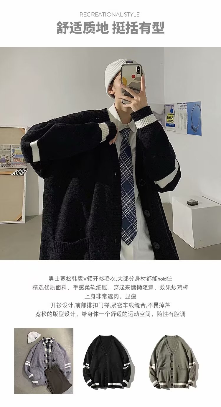 Áo len cardigan mùa thu đông nam phiên bản Hàn Quốc hợp thời trang in phong cách Hồng Kông retro dáng rộng thể thao áo khoác dệt kim thường ngày