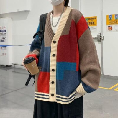 Áo len cardigan nam mùa thu đông thiết kế cảm giác thích hợp áo len cổ chữ V dáng rộng size lớn áo len cashmere nam nối áo khoác