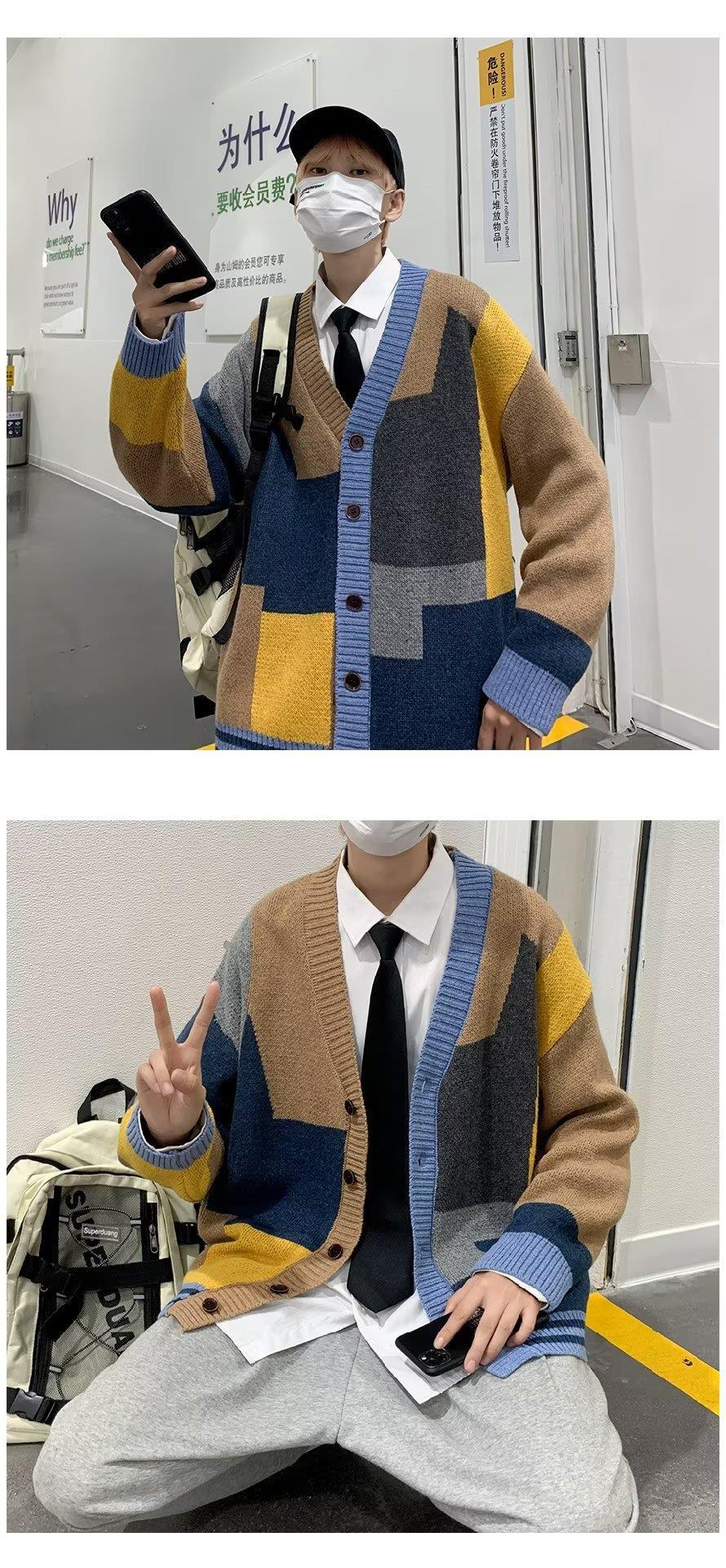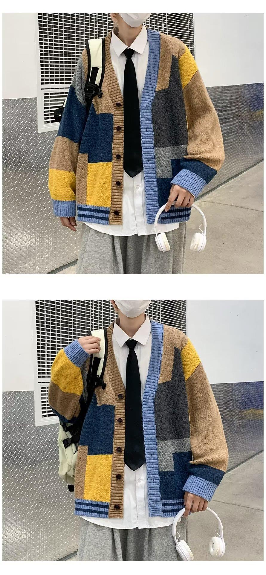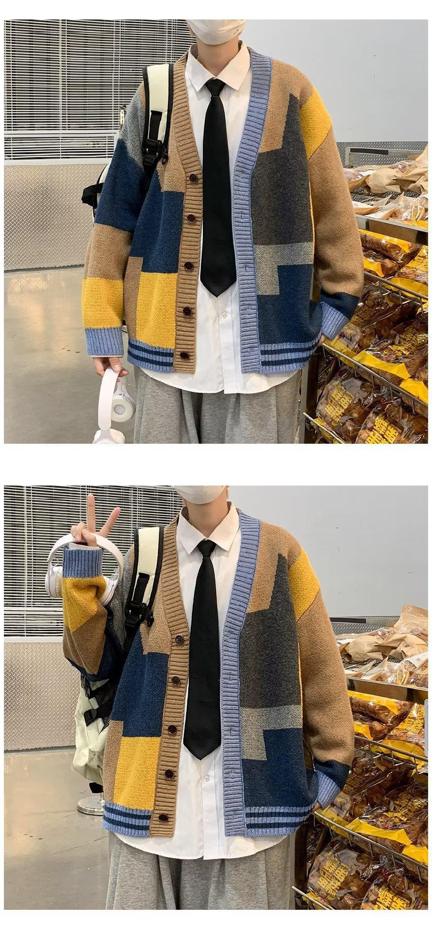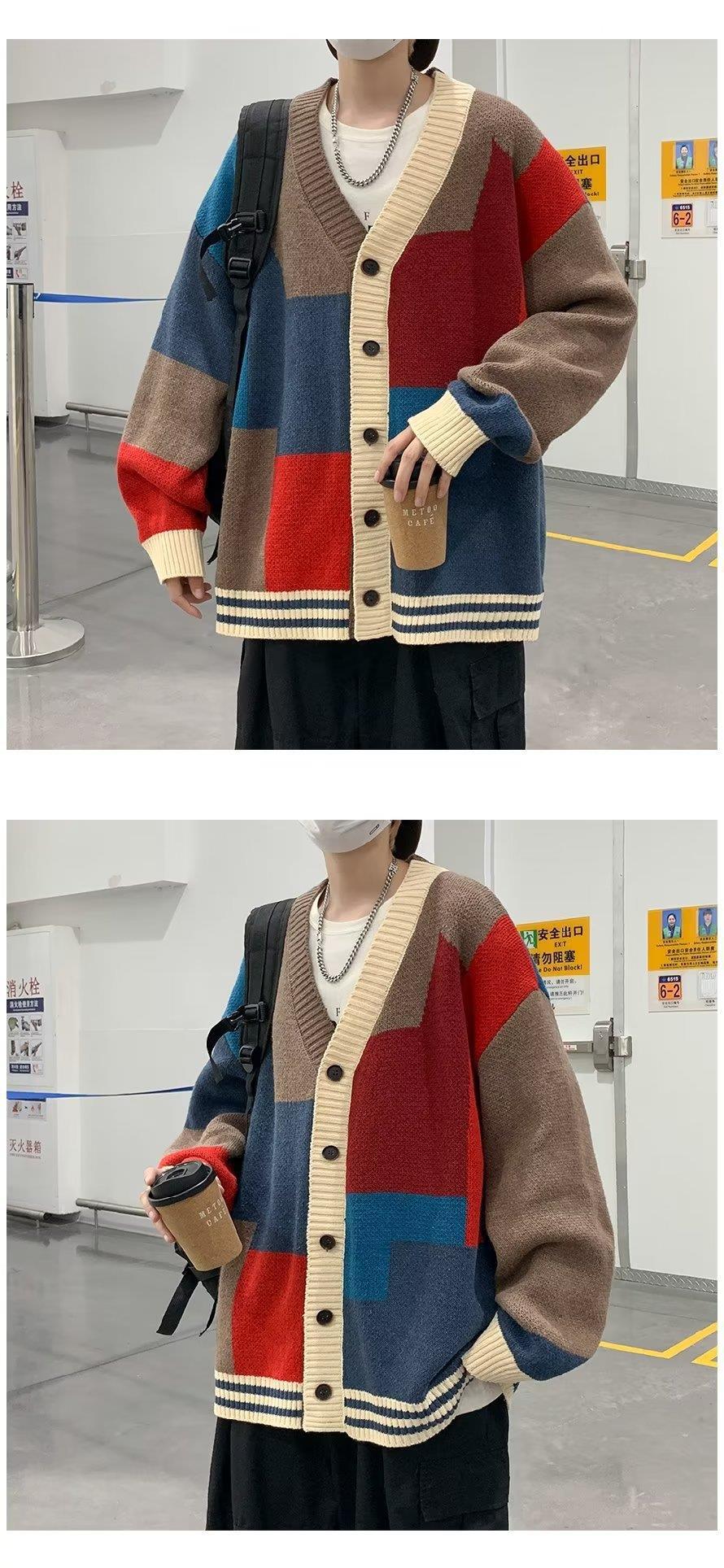 Áo len cardigan nam mùa thu đông thiết kế cảm giác thích hợp áo len cổ chữ V dáng rộng size lớn áo len cashmere nam nối áo khoác