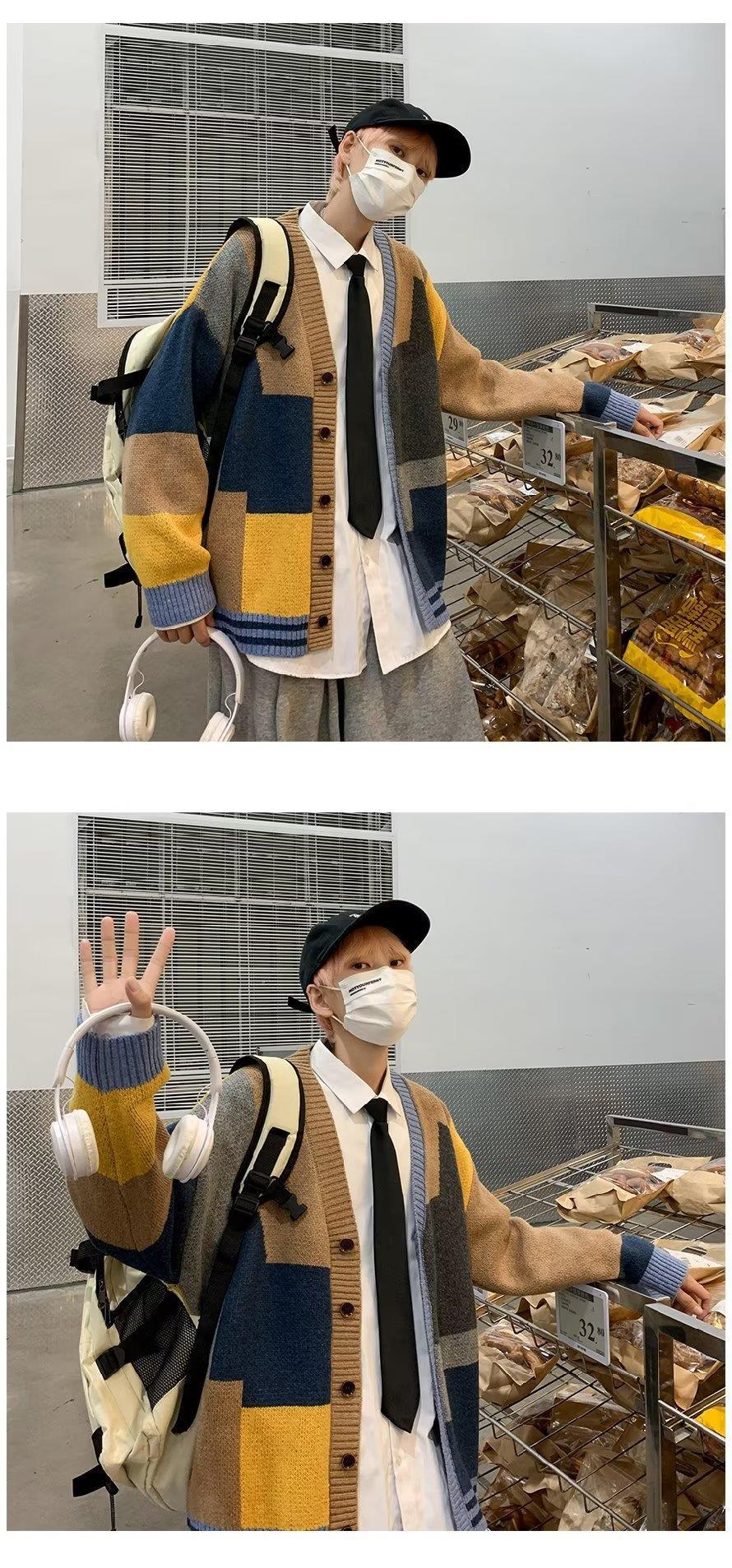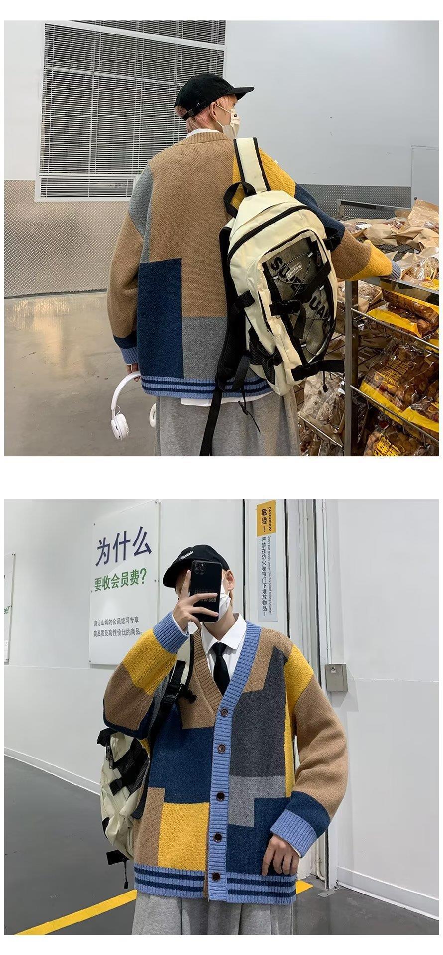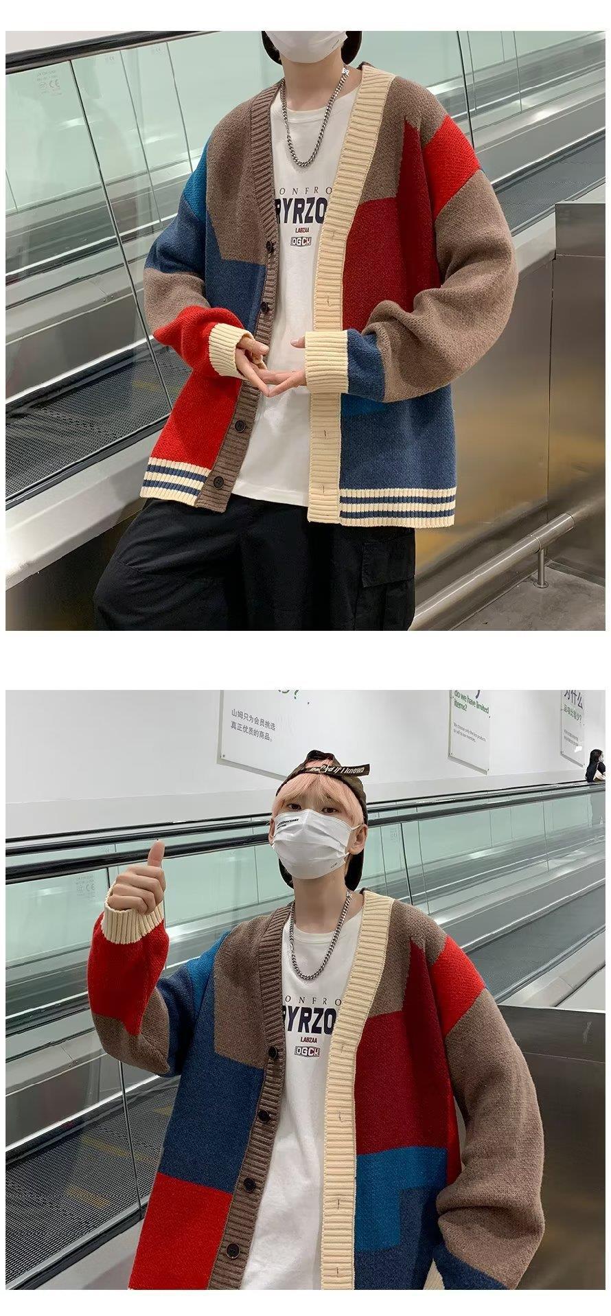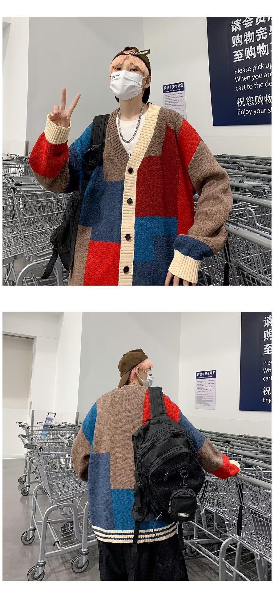 Áo len cardigan nam mùa thu đông thiết kế cảm giác thích hợp áo len cổ chữ V dáng rộng size lớn áo len cashmere nam nối áo khoác