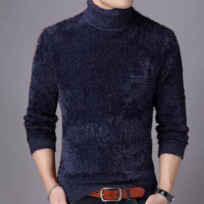 Áo len cashmere chồn nam dày ấm đáy sơ mi trung niên và người cao tuổi nửa cao cổ áo len bố trang phục