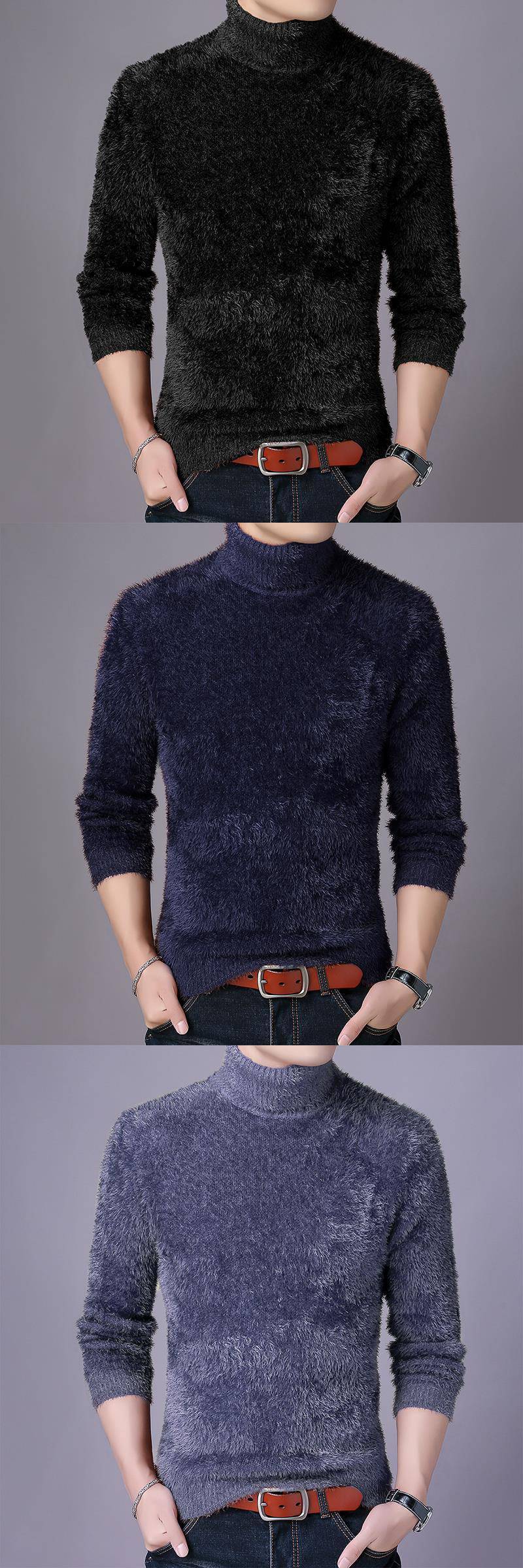 Áo len cashmere chồn nam dày ấm đáy sơ mi trung niên và người cao tuổi nửa cao cổ áo len bố trang phục