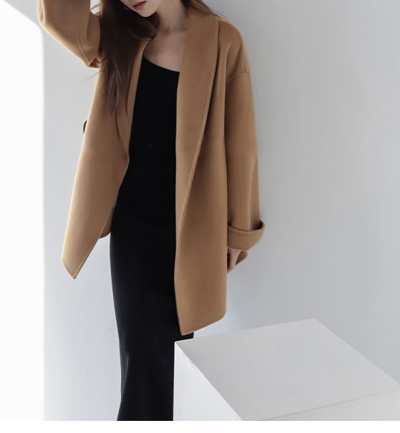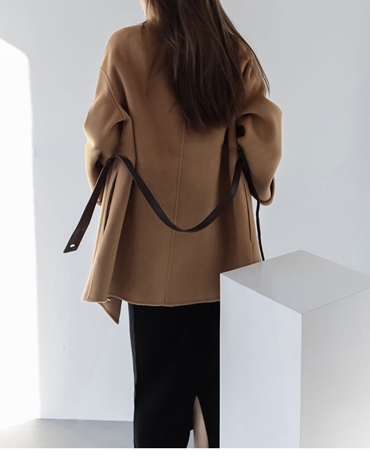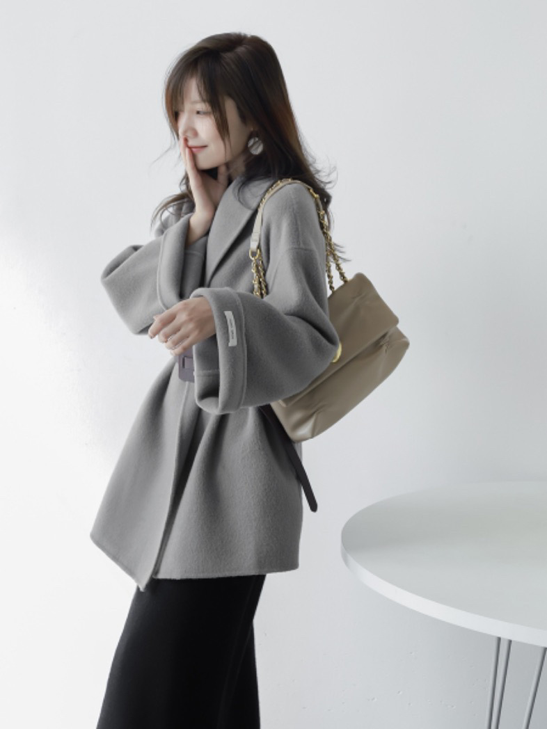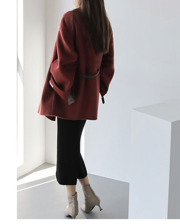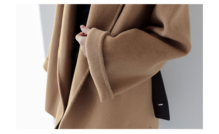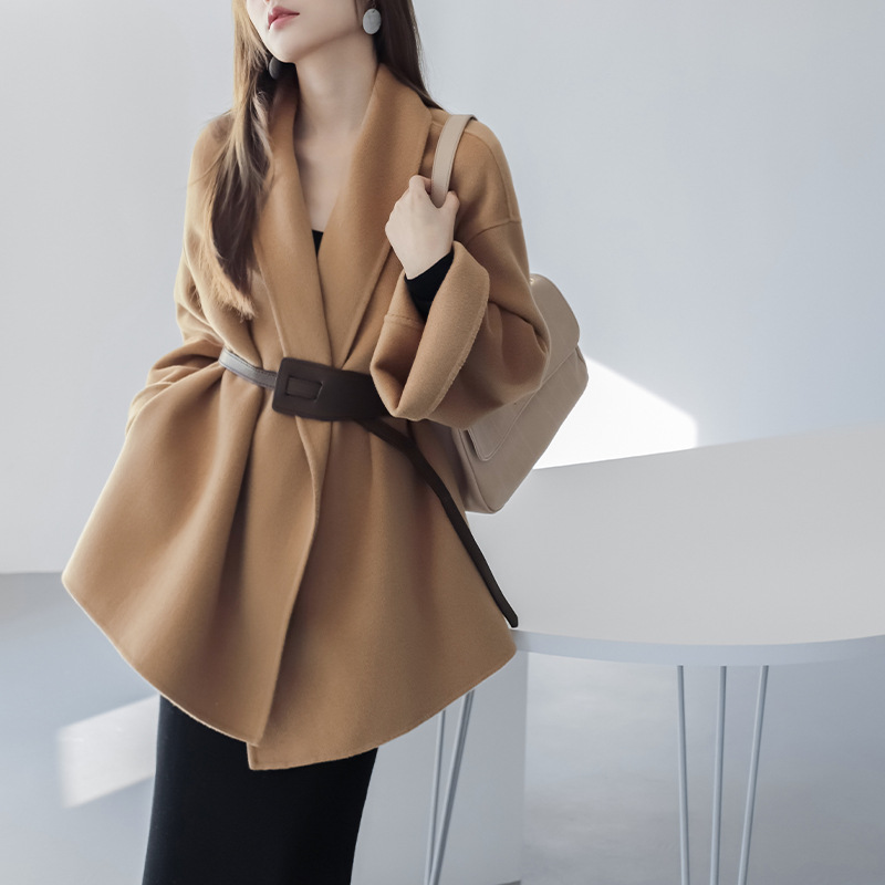 Áo len cashmere hai mặt nhỏ số lượng cao của phụ nữ có chiều dài vừa phải thắt lưng thắt lưng hình bóng áo khoác len