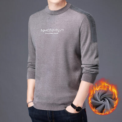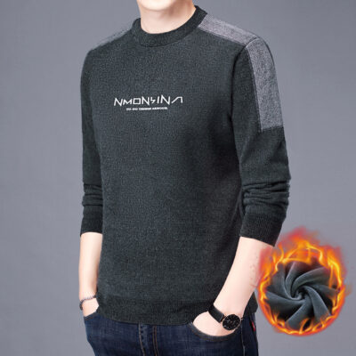 Áo len chenille lông cừu dày cho người trung niên và thanh niên áo len cổ tròn mùa đông áo len nam ấm áp đáy áo sơ mi