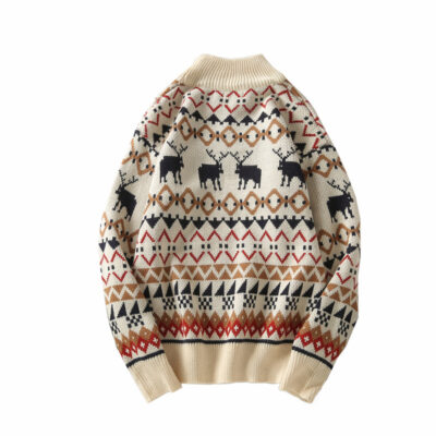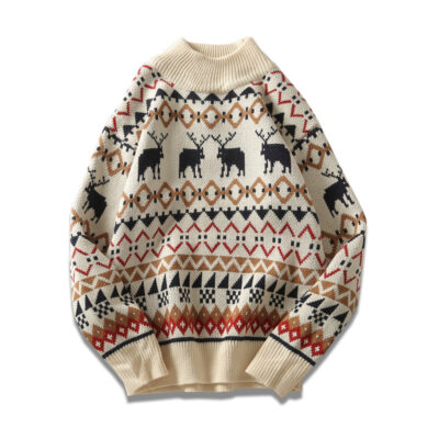 Áo len chui đầu phong cách dân tộc Nhật Bản phong cách cổ điển nam Hàn Quốc mùa đông cặp đôi trang phục Giáng sinh Iceland Áo len nửa cổ lọ