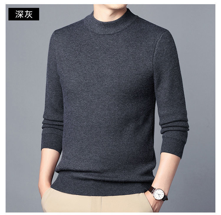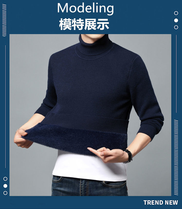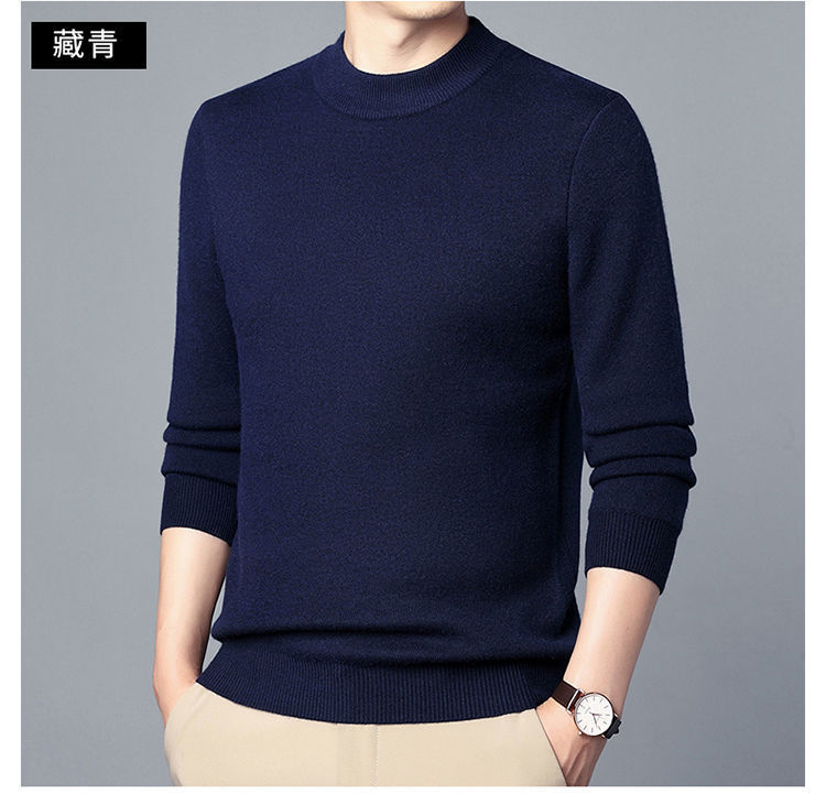 Áo len cổ cao nam áo sơ mi nam màu Plus nhung áo len dày trung niên và người cao tuổi đáy áo sơ mi AliExpress bán buôn một mảnh