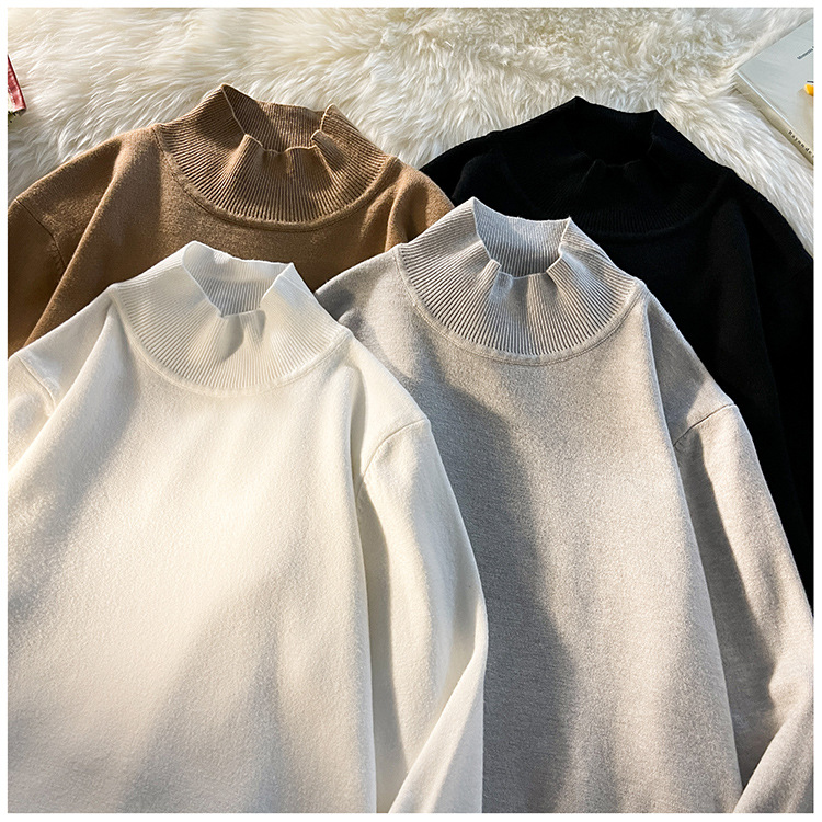Áo len cổ lọ phong cách trẻ trung Hồng Kông dành cho nam 2022 mùa thu đông tân sinh viên áo len dài tay có đáy