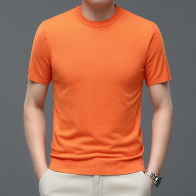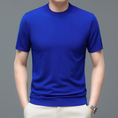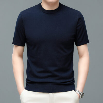Áo len cổ tròn tay ngắn nam mùa xuân hè 2023 áo chui đầu nam Áo thun nửa tay kháng khuẩn thoáng khí cho nam
