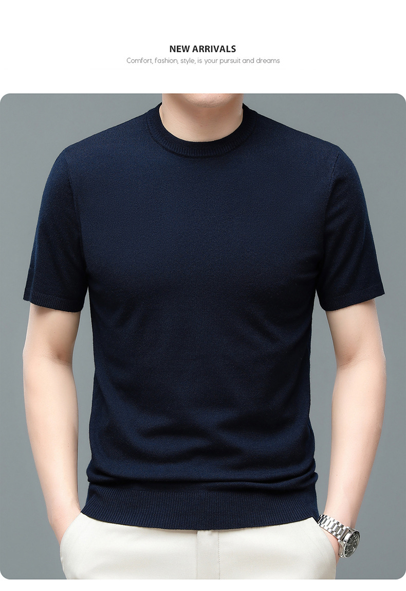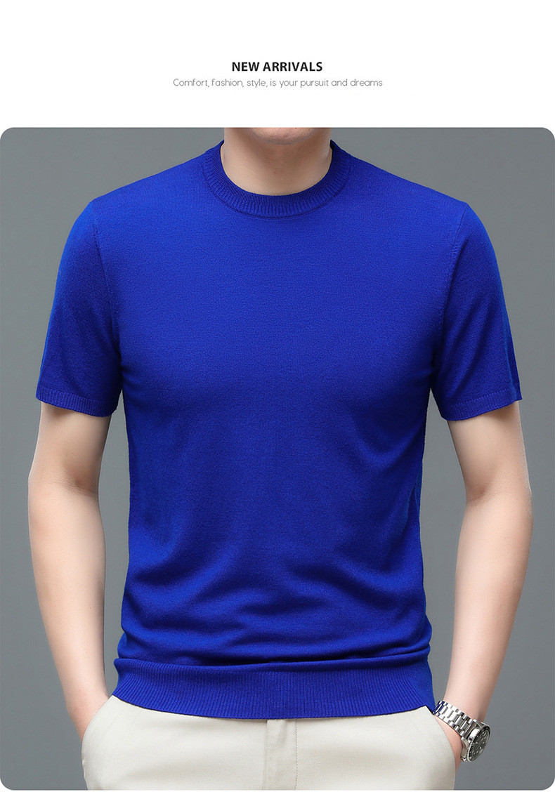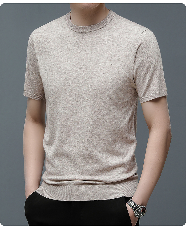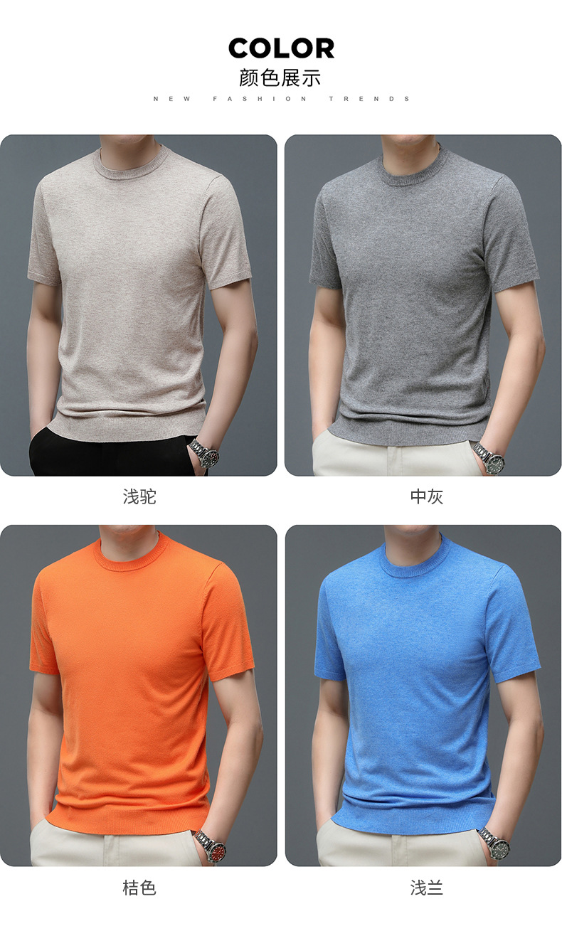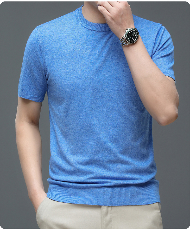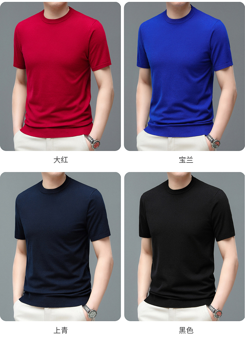 Áo len cổ tròn tay ngắn nam mùa xuân hè 2023 áo chui đầu nam Áo thun nửa tay kháng khuẩn thoáng khí cho nam