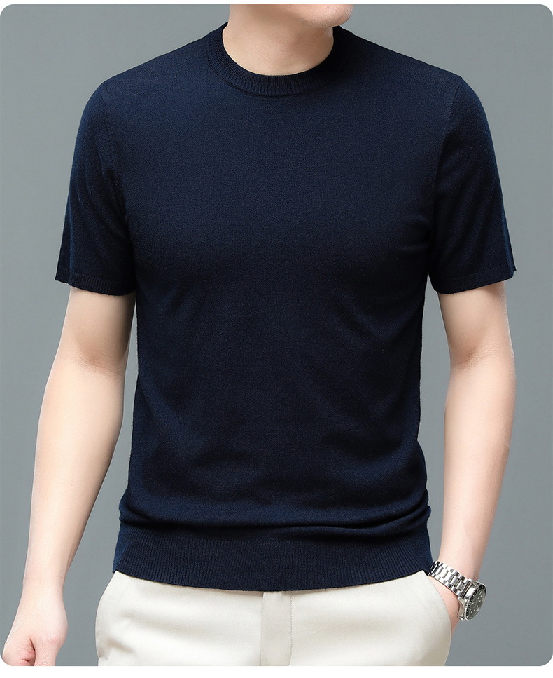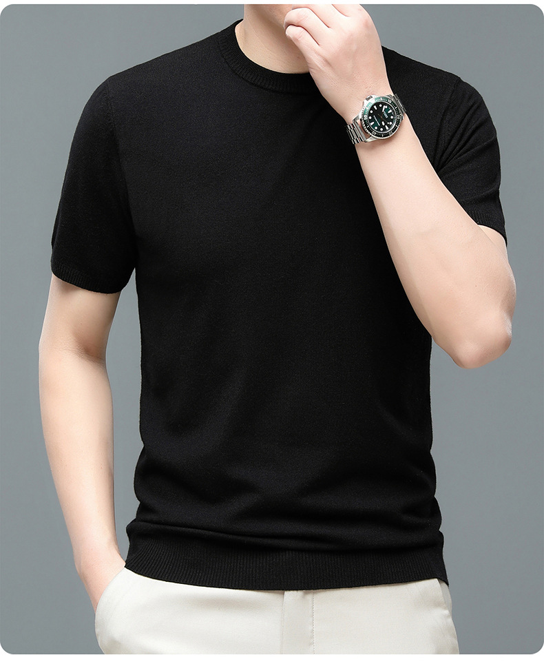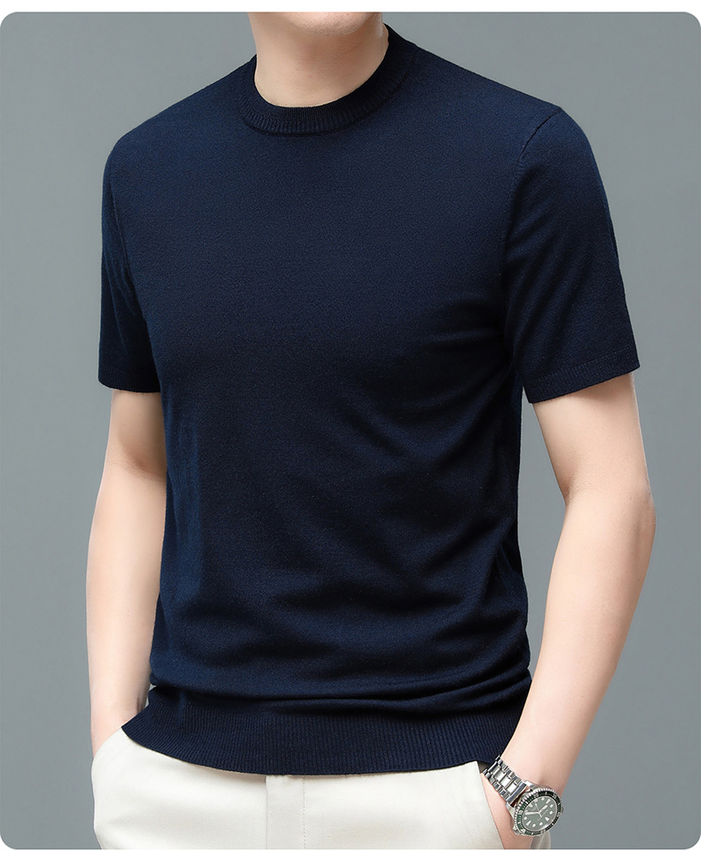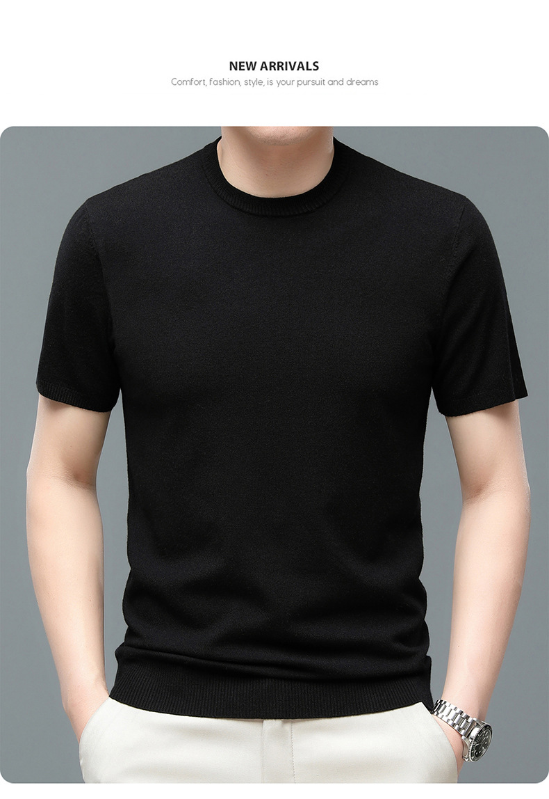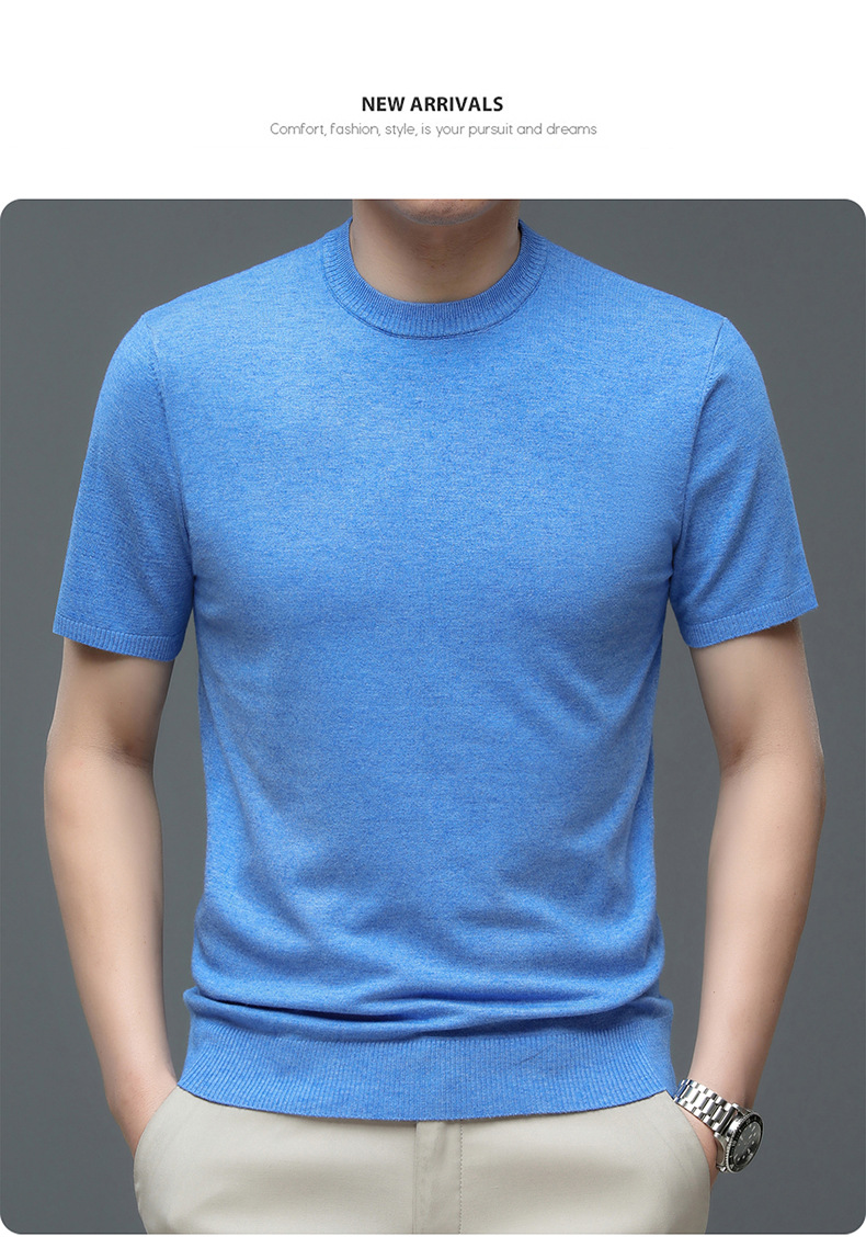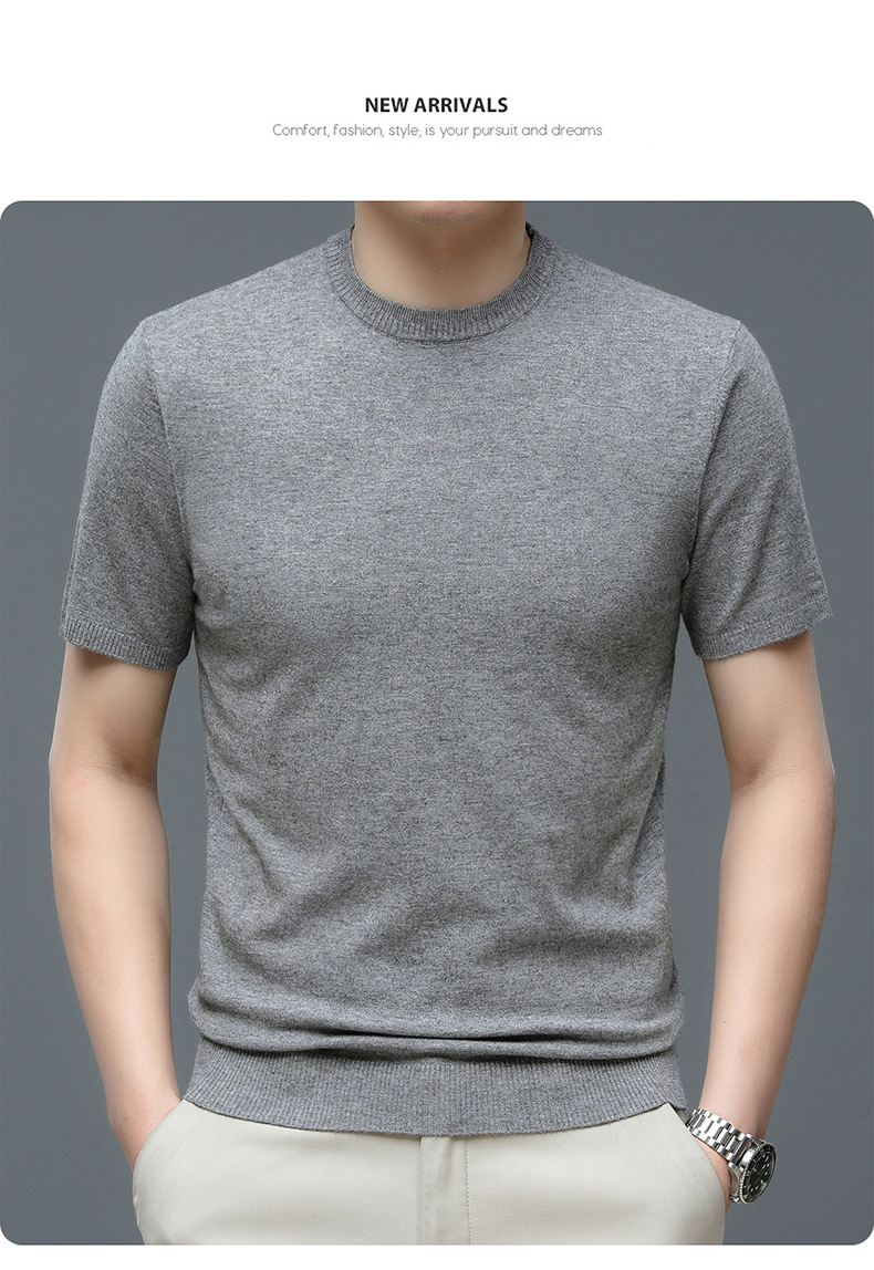 Áo len cổ tròn tay ngắn nam mùa xuân hè 2023 áo chui đầu nam Áo thun nửa tay kháng khuẩn thoáng khí cho nam