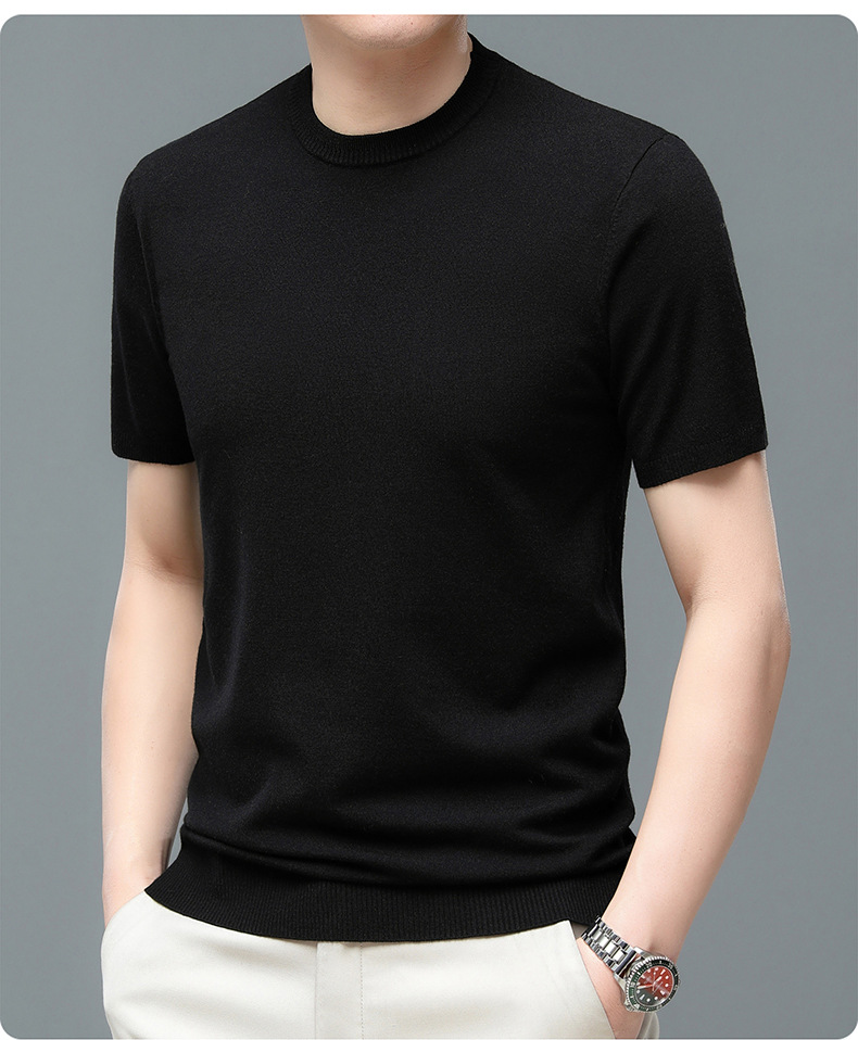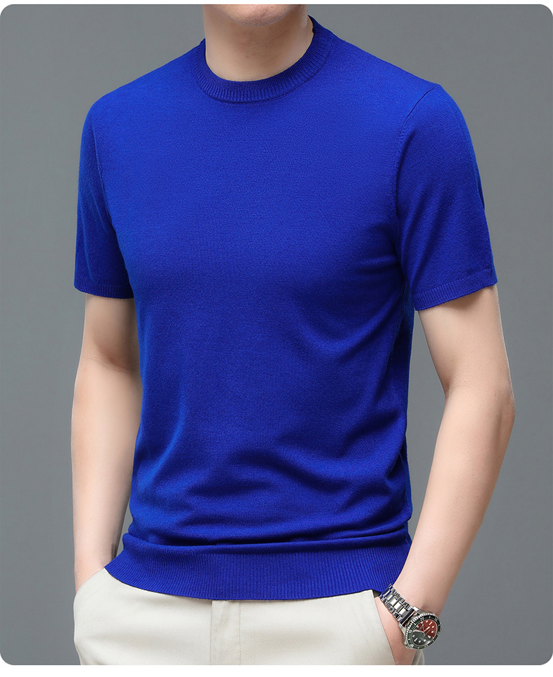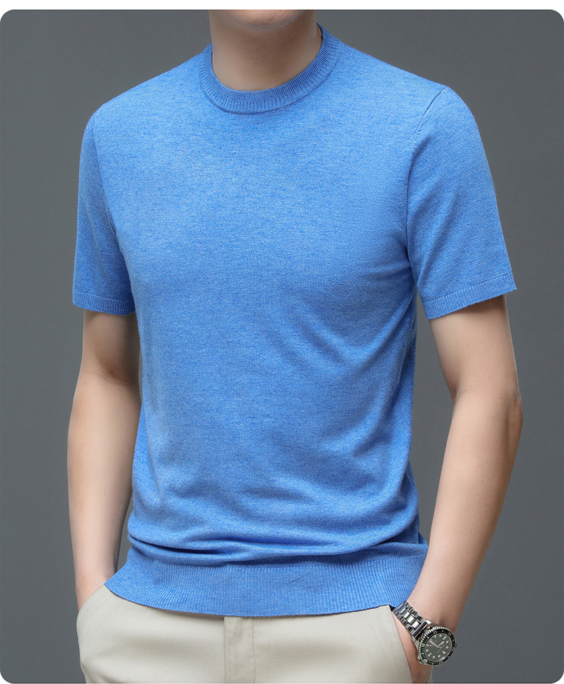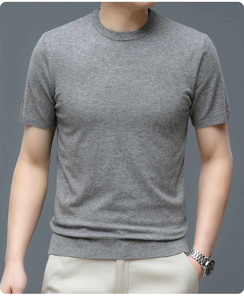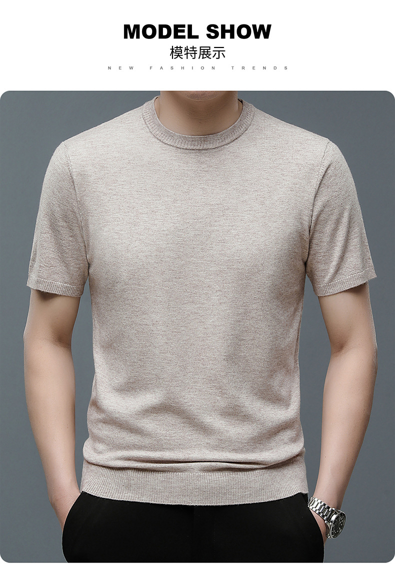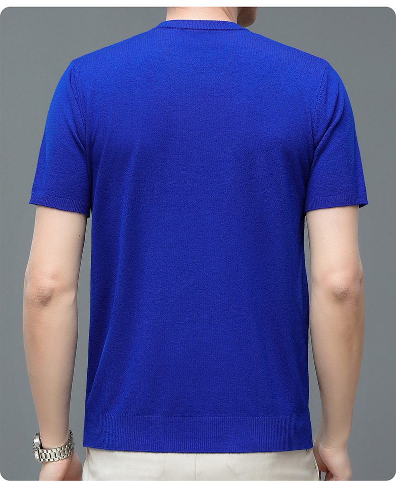 Áo len cổ tròn tay ngắn nam mùa xuân hè 2023 áo chui đầu nam Áo thun nửa tay kháng khuẩn thoáng khí cho nam