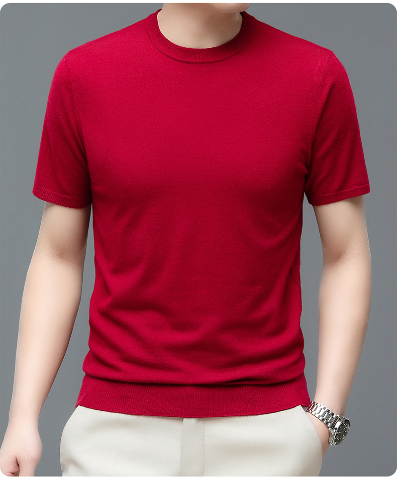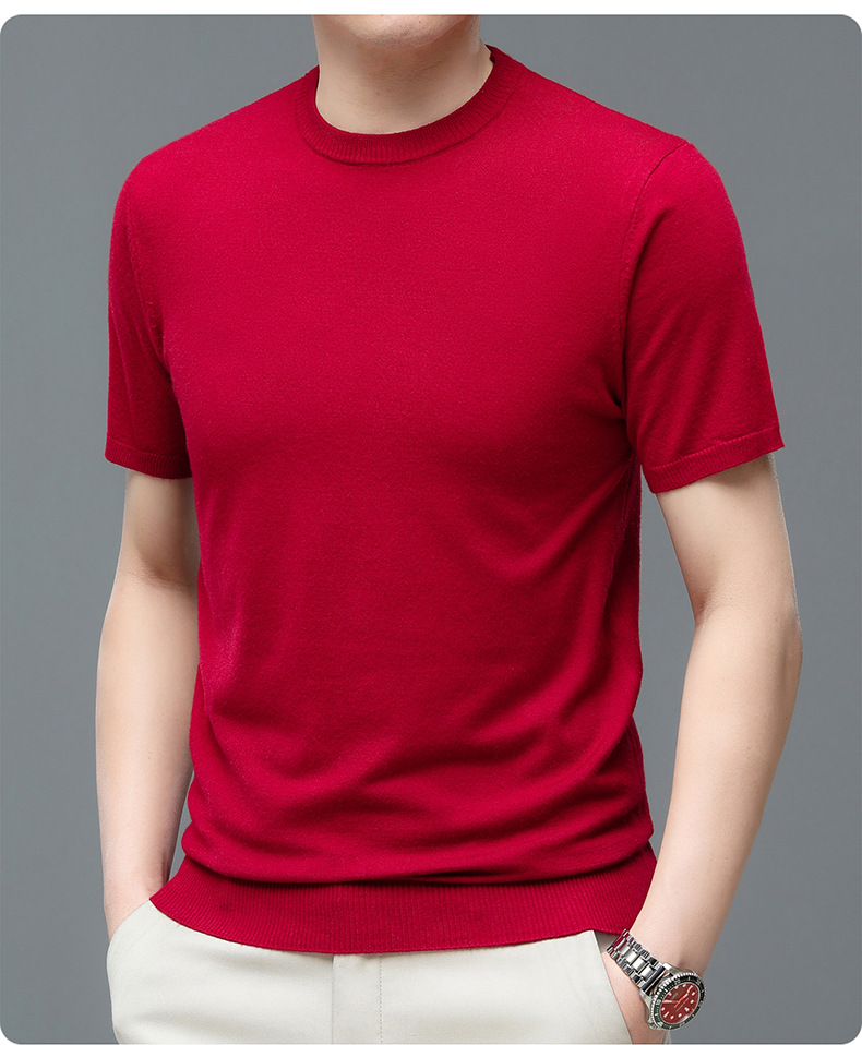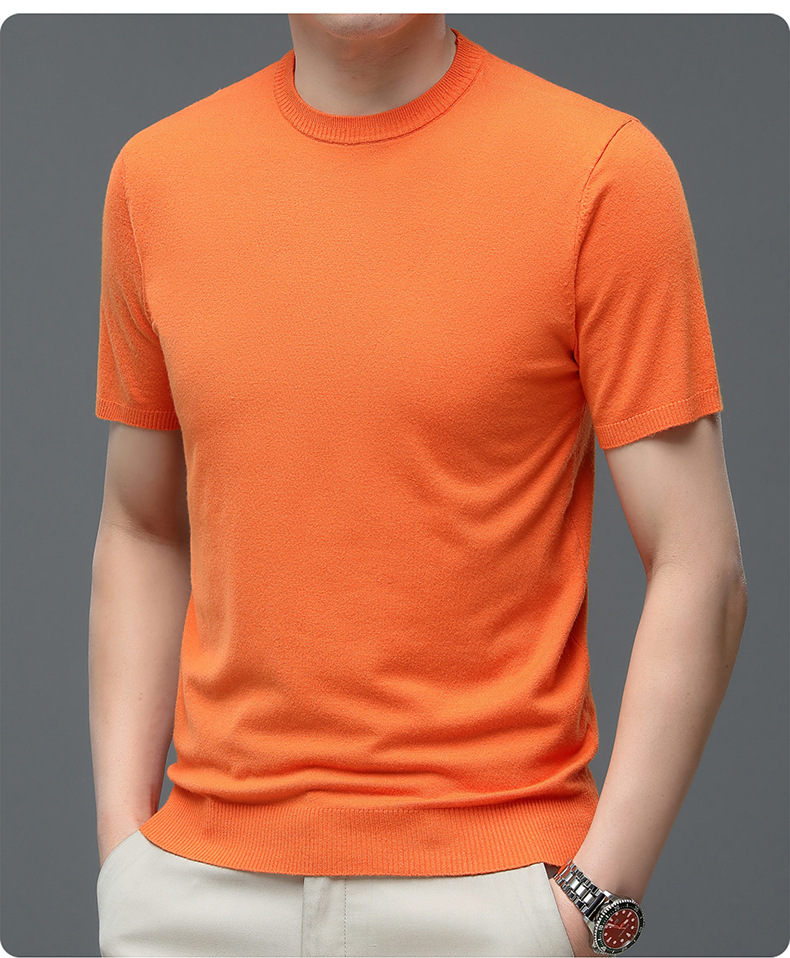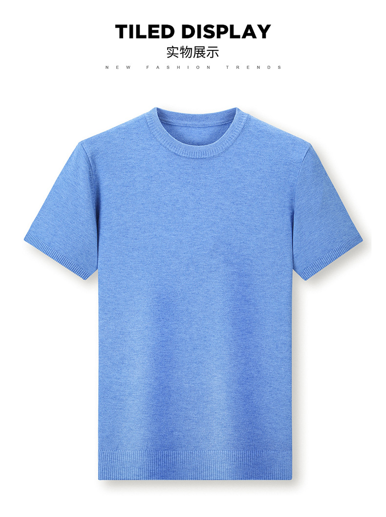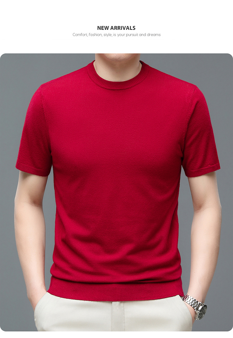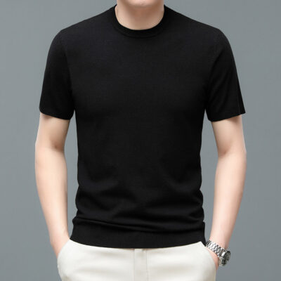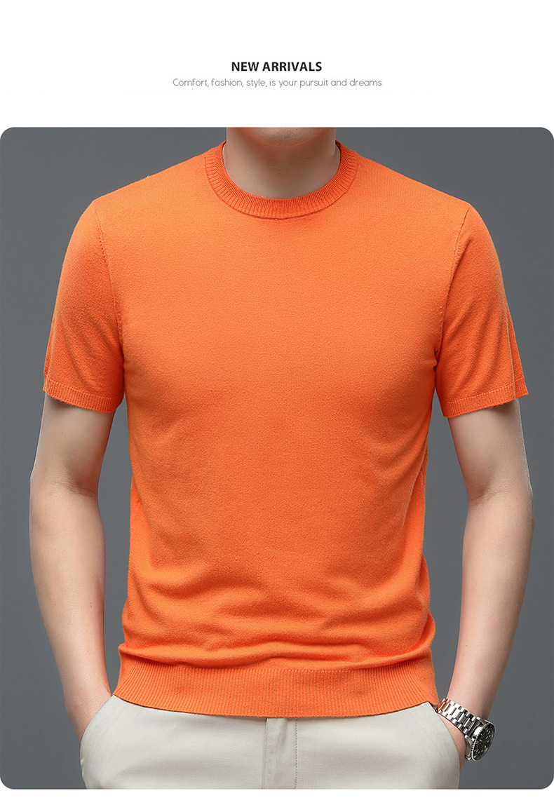 Áo len cổ tròn tay ngắn nam mùa xuân hè 2023 áo chui đầu nam Áo thun nửa tay kháng khuẩn thoáng khí cho nam
