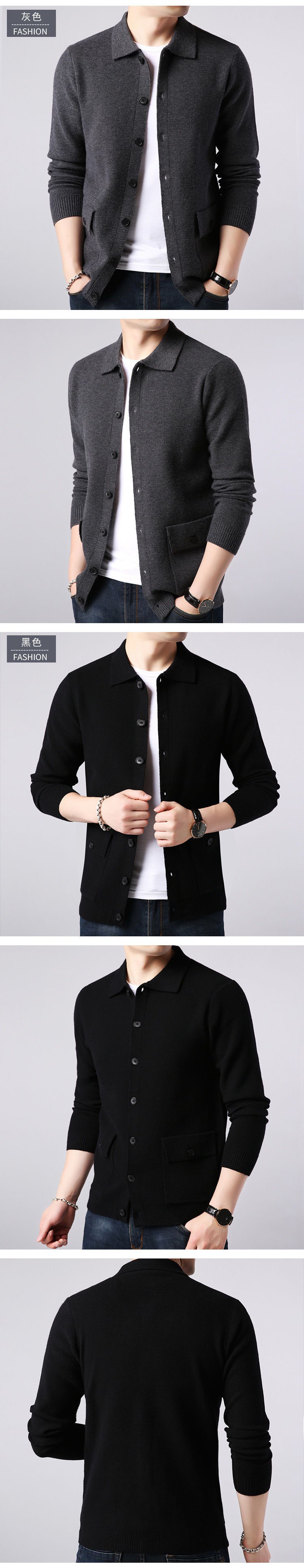 Áo len đan len mùa đông nam mới nam dài tay có nút áo len nam trung niên dệt kim có ve áo