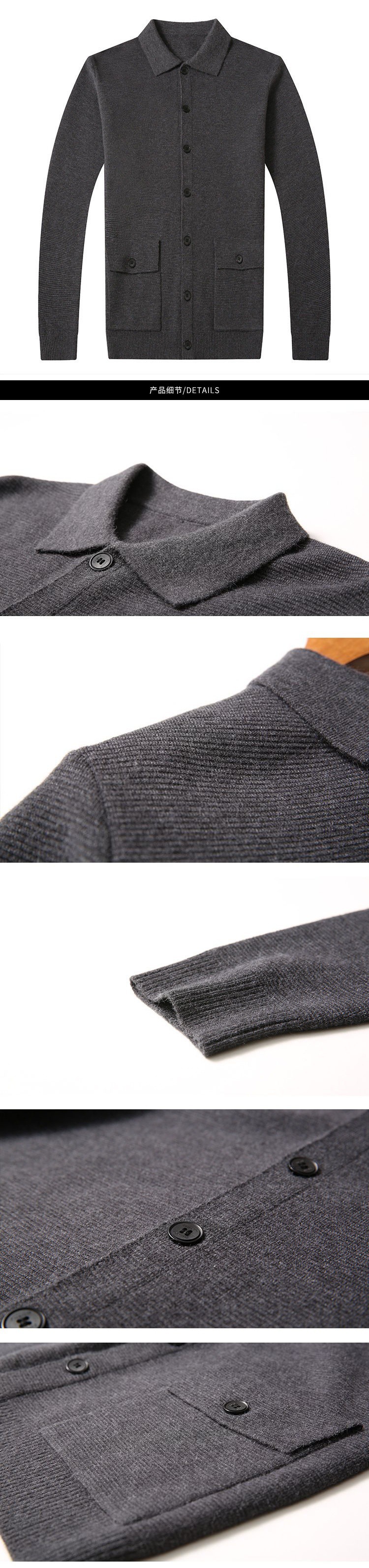Áo len đan len mùa đông nam mới nam dài tay có nút áo len nam trung niên dệt kim có ve áo