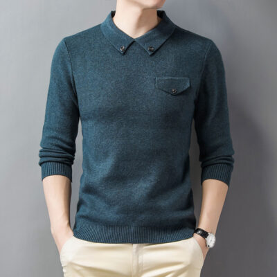 Áo len dệt kim có ve áo nam mùa thu đông mới 2020 đơn giản và thời trang áo len nam dày dặn