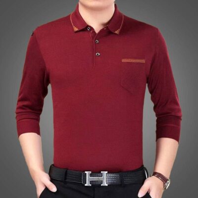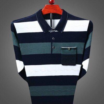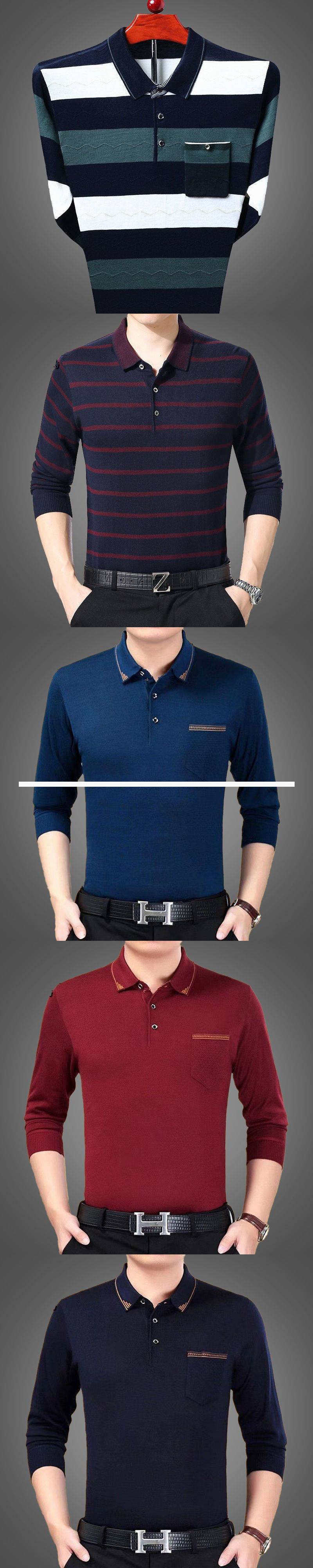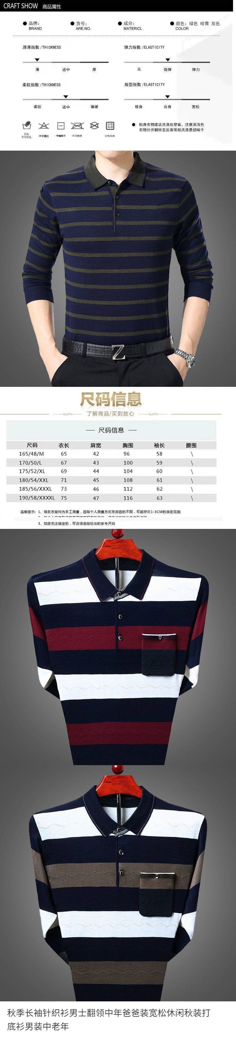 Áo len dệt kim dài tay mùa thu áo sơ mi nam có ve áo của người cha trung niên rộng rãi quần áo mùa thu giản dị có đáy áo sơ mi nam quần áo trung niên và người cao tuổi