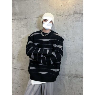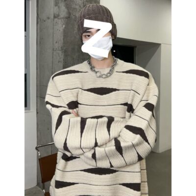 Áo len dệt kim gợn nước lười cho nam và nữ vào mùa thu đông, áo len nhung hươu, thiết kế nối hai màu, mẫu cặp đôi