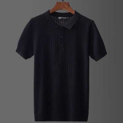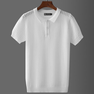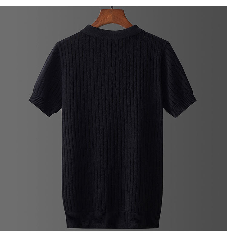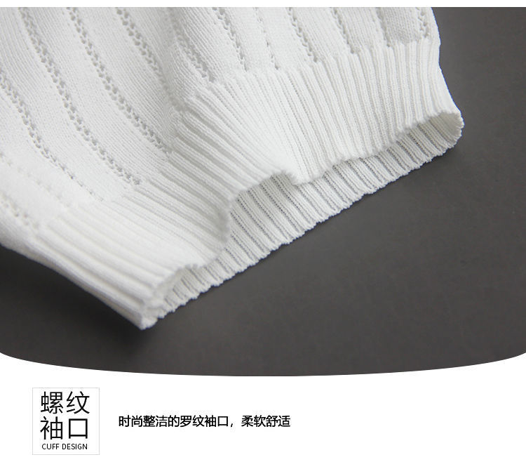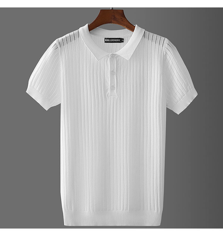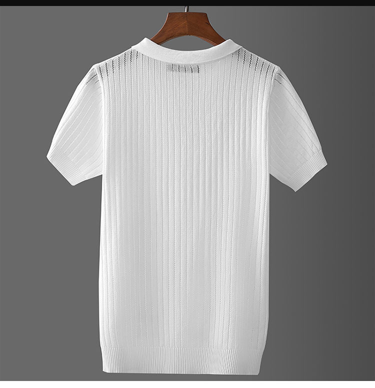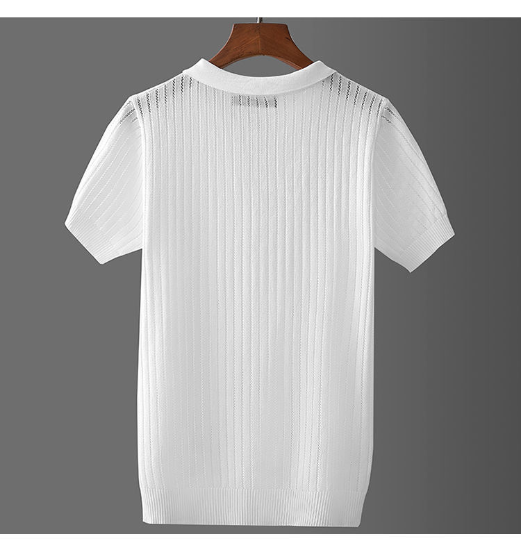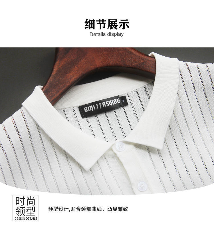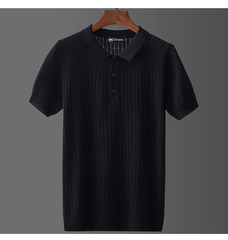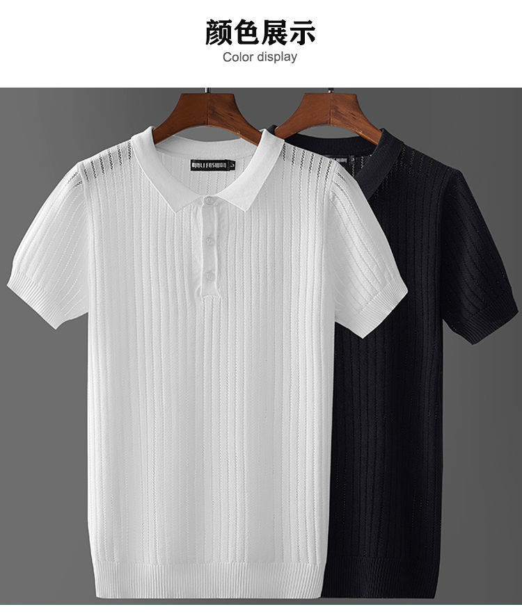 Áo len dệt kim ngắn tay lụa băng nam dệt kim rỗng có ve áo poloT cao cấp phong cách công sở sơ mi mỏng nửa tay có đáy