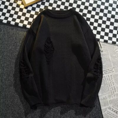 Áo len gió lười cổ tròn xé toạc nam mùa thu đông phong cách Hồng Kông dài tay màu trơn áo len dáng rộng thương hiệu thời trang