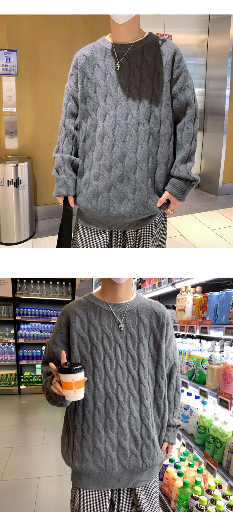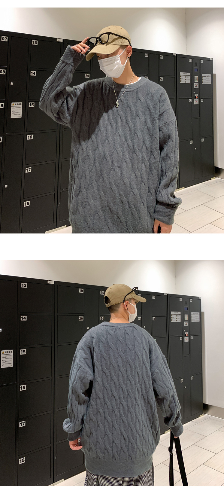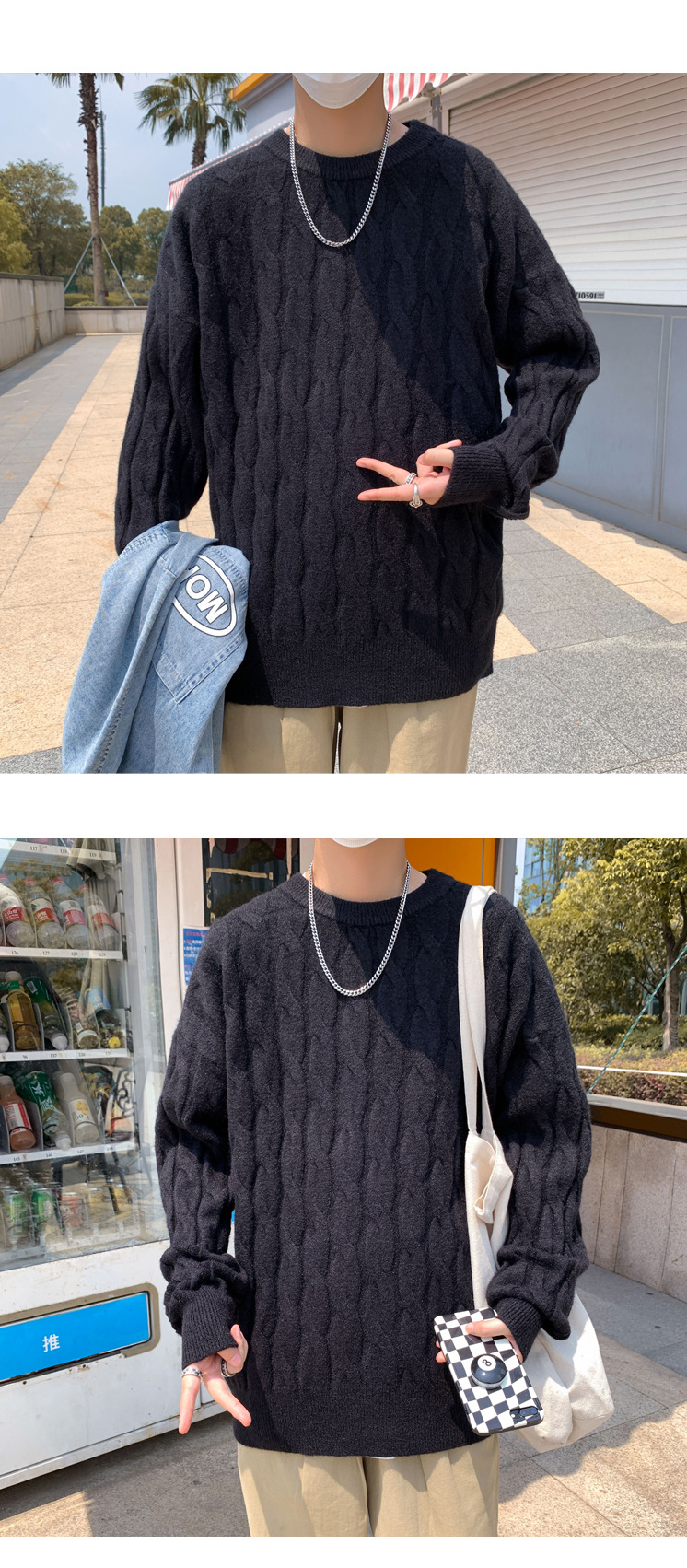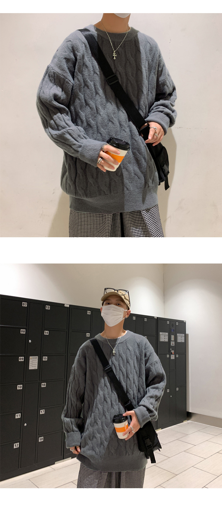 Áo len gió nấu chín nhẹ cho nam mùa thu đông trẻ trung Áo len đan xoắn lỏng lẻo màu trơn xu hướng sang trọng phù hợp với tất cả áo len