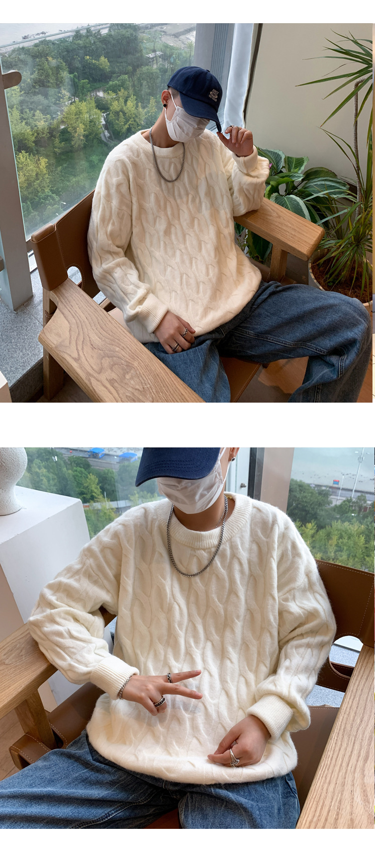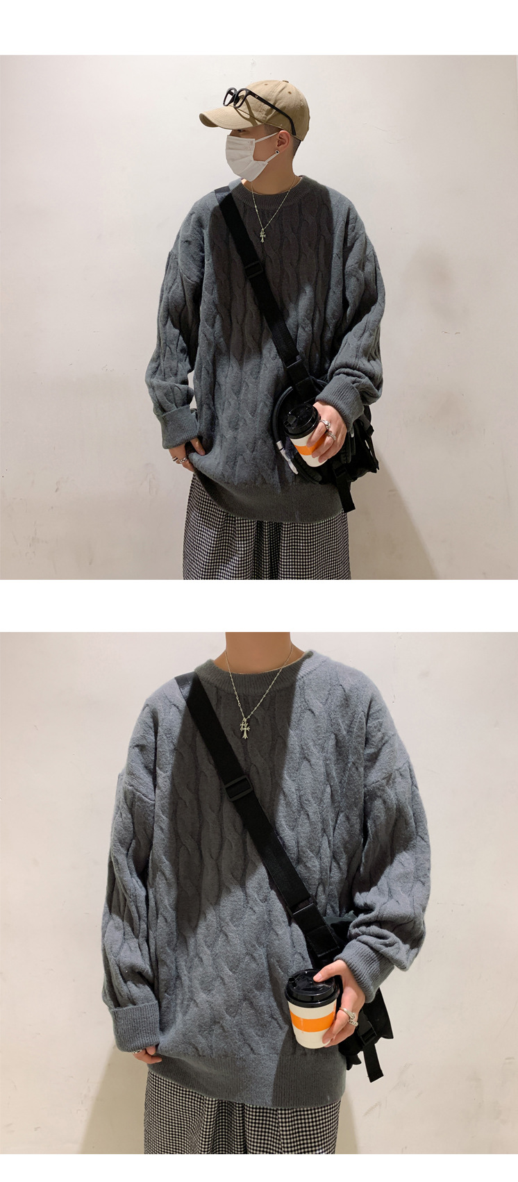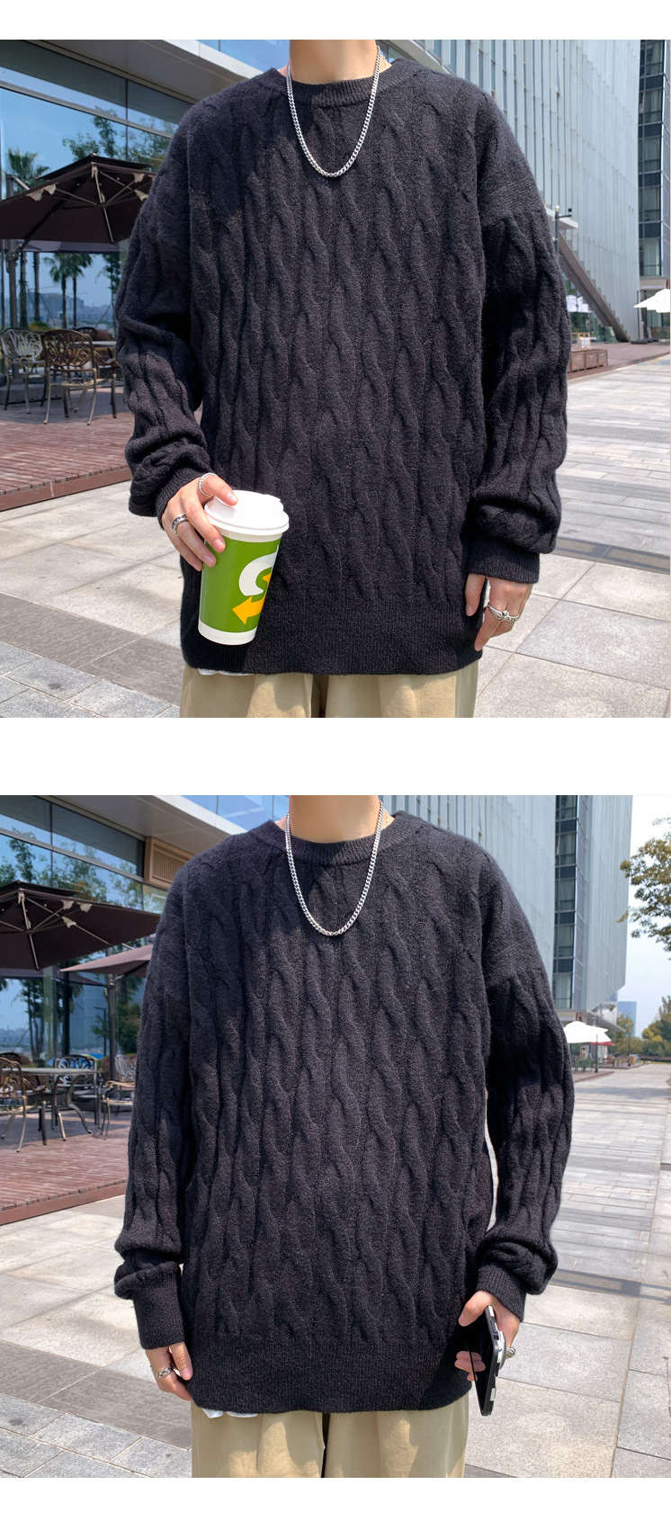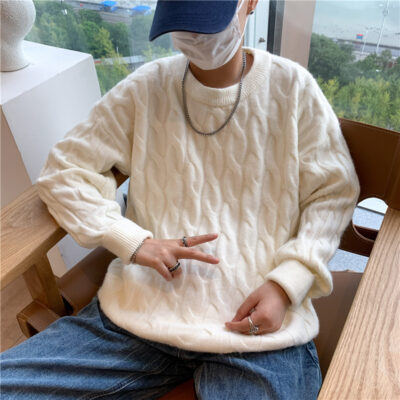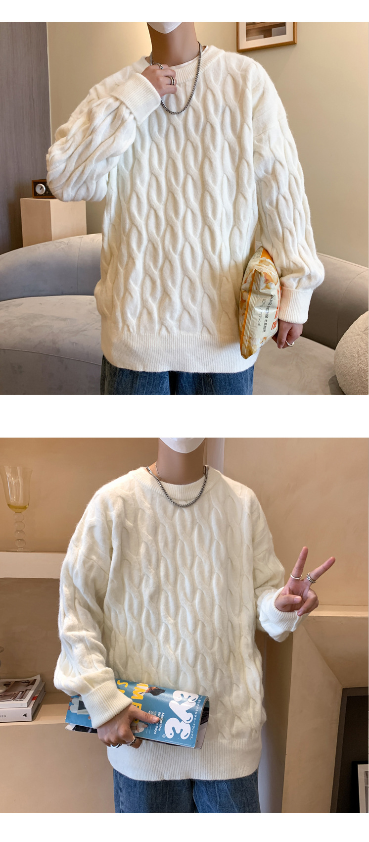 Áo len gió nấu chín nhẹ cho nam mùa thu đông trẻ trung Áo len đan xoắn lỏng lẻo màu trơn xu hướng sang trọng phù hợp với tất cả áo len