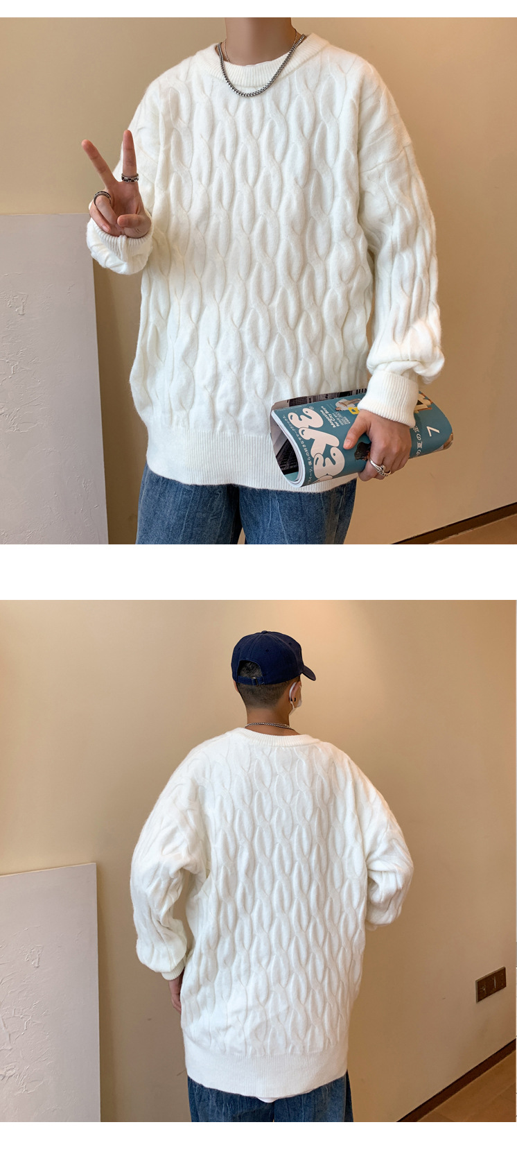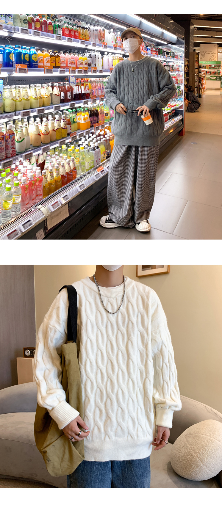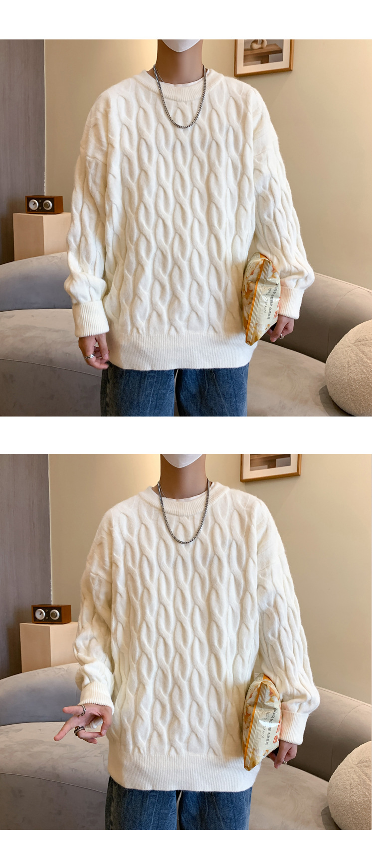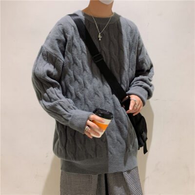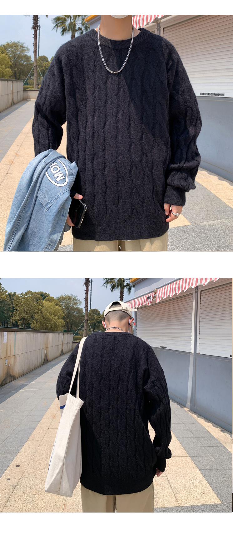 Áo len gió nấu chín nhẹ cho nam mùa thu đông trẻ trung Áo len đan xoắn lỏng lẻo màu trơn xu hướng sang trọng phù hợp với tất cả áo len