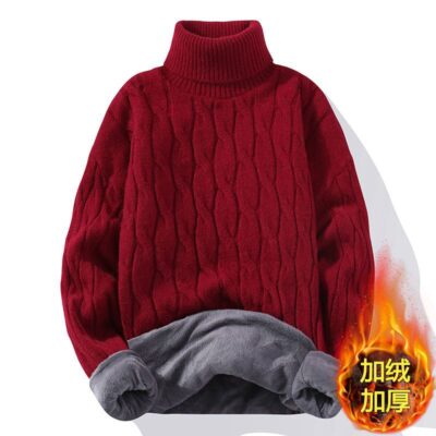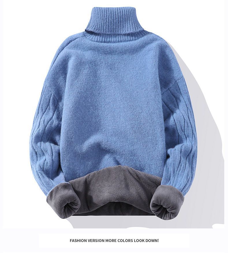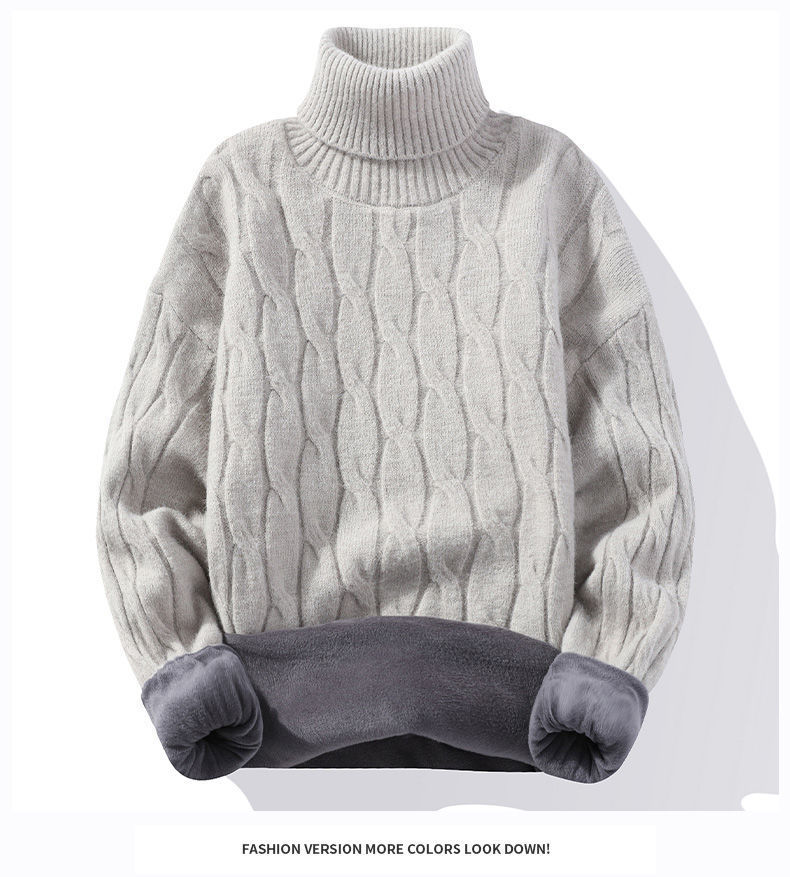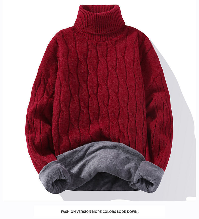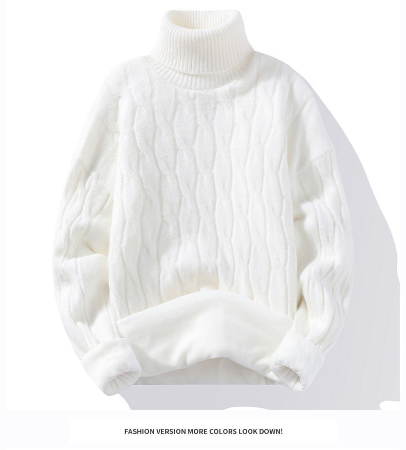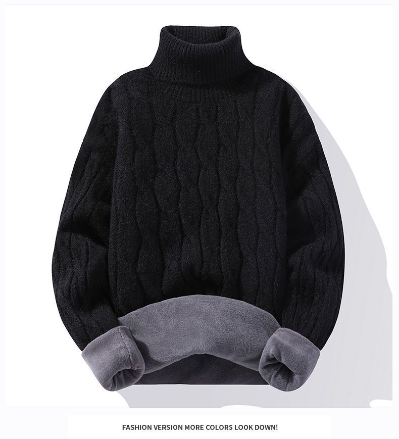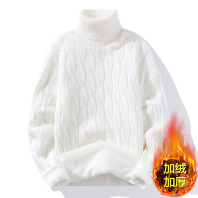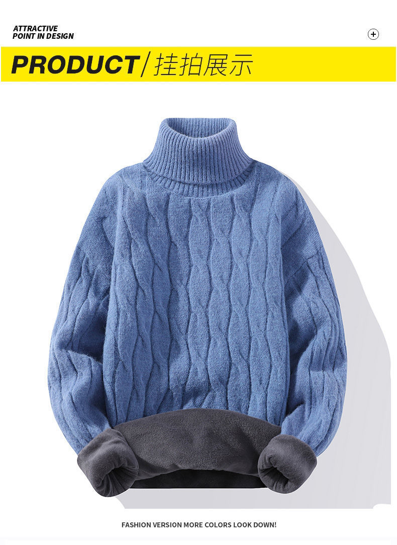 Áo len lông cừu dày cho nam mùa thu đông ve áo cao phiên bản Hàn Quốc thanh niên hoa xoắn áo len chui đầu thời trang áo len cổ cao triều