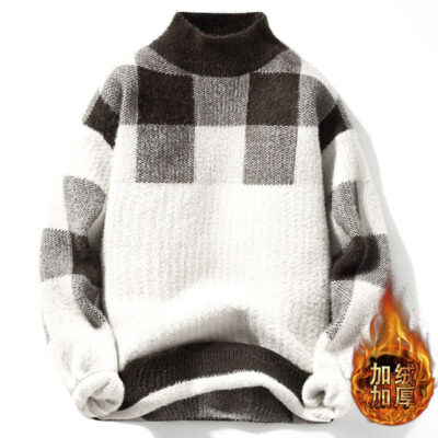 Áo len mùa đông nam học sinh áo len cao cổ phong cách Hàn Quốc dáng rộng cá tính chất dày cộng nhung ấm xu hướng ve áo