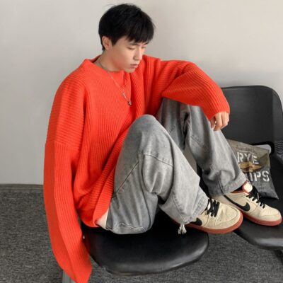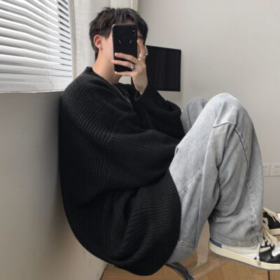 Áo len nam cổ tròn màu trơn mùa thu đông 2022 phiên bản Hàn Quốc Áo len dệt kim rộng phù hợp với tất cả các trận đấu chui đầu đáy áo sơ mi triều dày