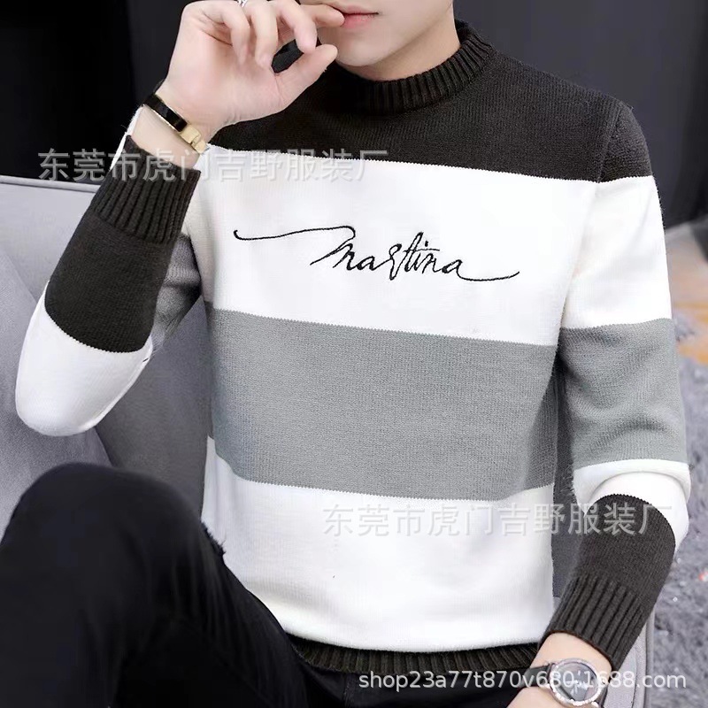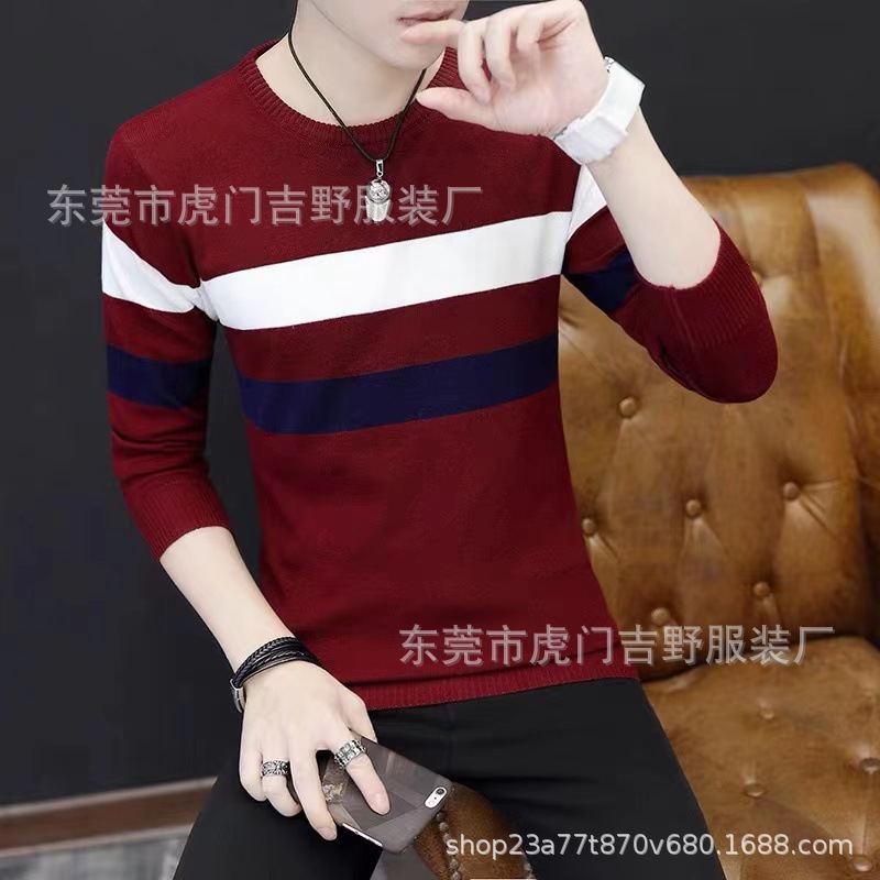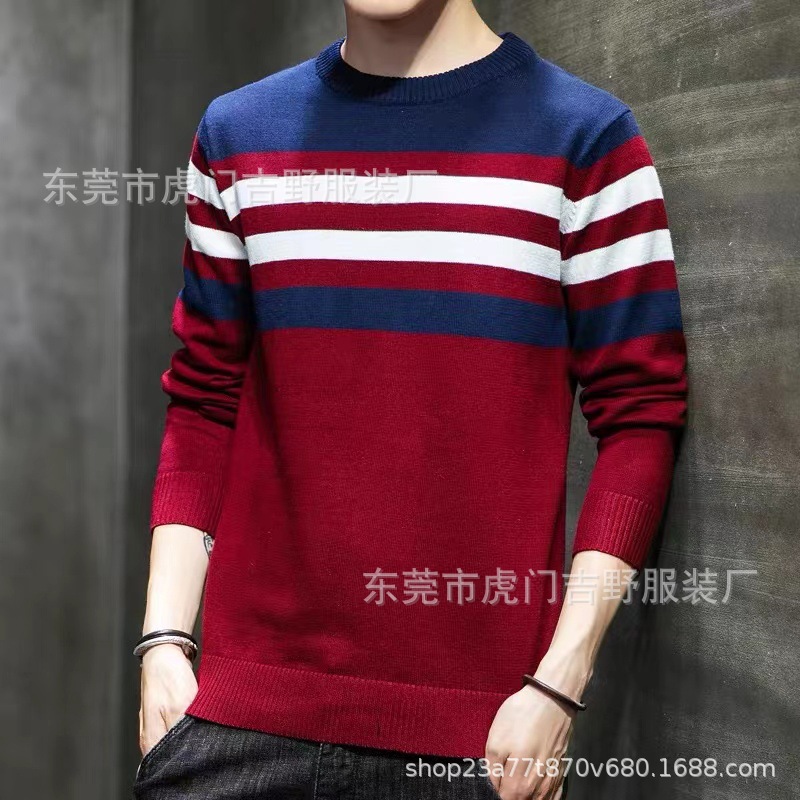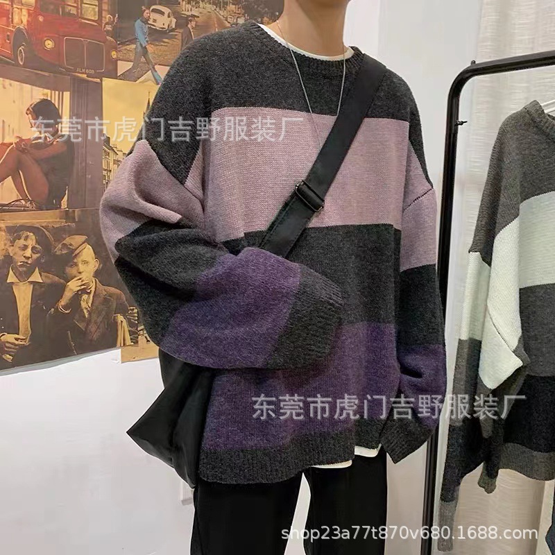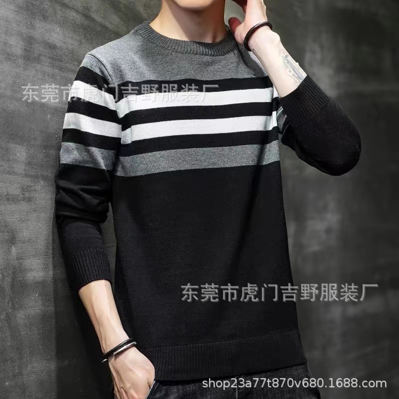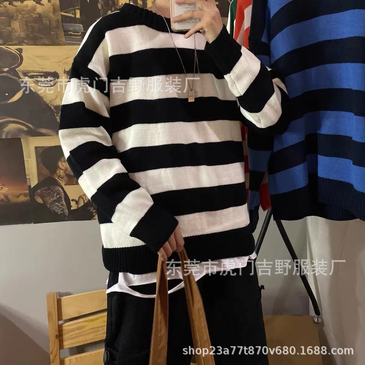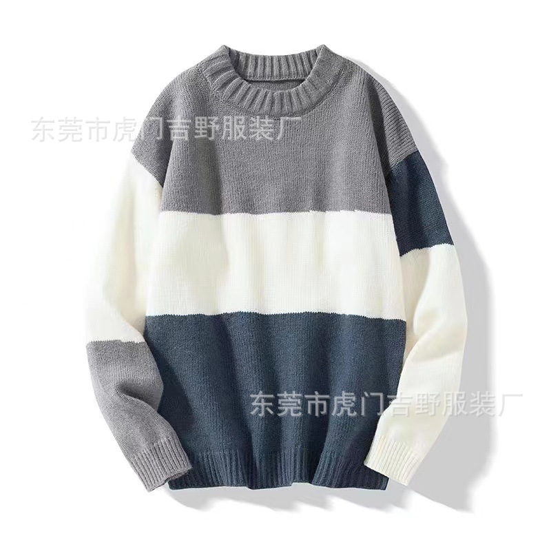 Áo Len Nam Cổ Tròn Mới Phối Màu Rời Áo Len Nam Phong Cách Nhật Bản Áo Len Sọc Màu Tương Phản Bán Buôn Nhiều Loại